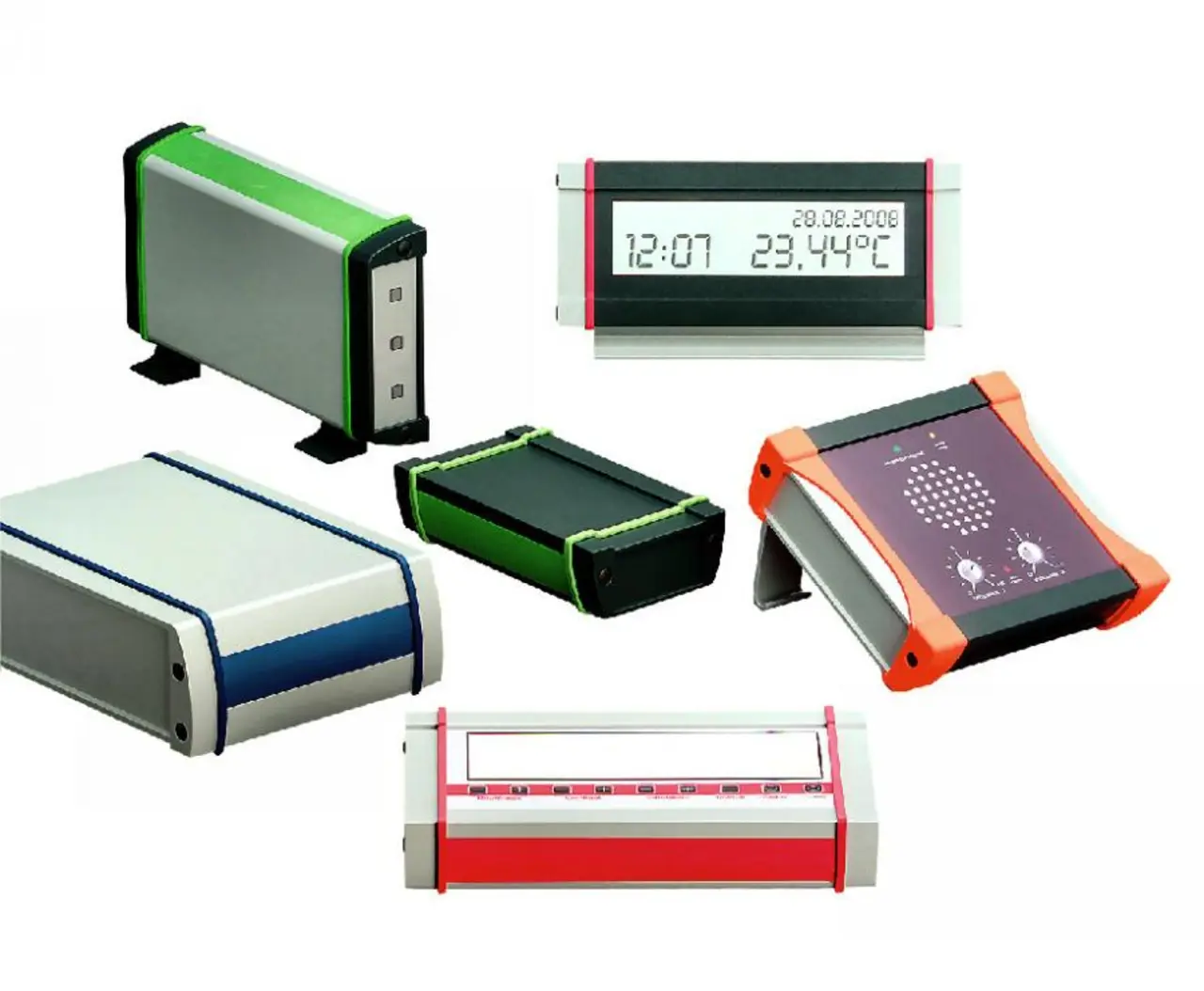 Die als Hand-, Wand- oder Tischgehäuse einsetzbaren Aluminiumgehäuse (Bild 2) überzeugen nicht nur durch konstruktive Eigenschaften, sondern auch durch ihr funktionales Zubehör. Die bis zur Deckenwand durchgängigen und gleichmäßig verteilten Nuten mit einheitlichem Rastermaß (Bild 3) unterstützen die einfache und sichere Fixierung von Leiter- und Montageplatten. Zwischen drei Profilvarianten und vier Profilquerschnitten kann der Kunde wählen. Standardlängen sind ab Lager verfügbar, Sonderlängen kurzfristig lieferbar. Ein Abschlussdeckel aus Zinkdruckguss verschließt das pulverbeschichtete Gehäuse, das über eine gute EMV-Abschirmung verfügt.