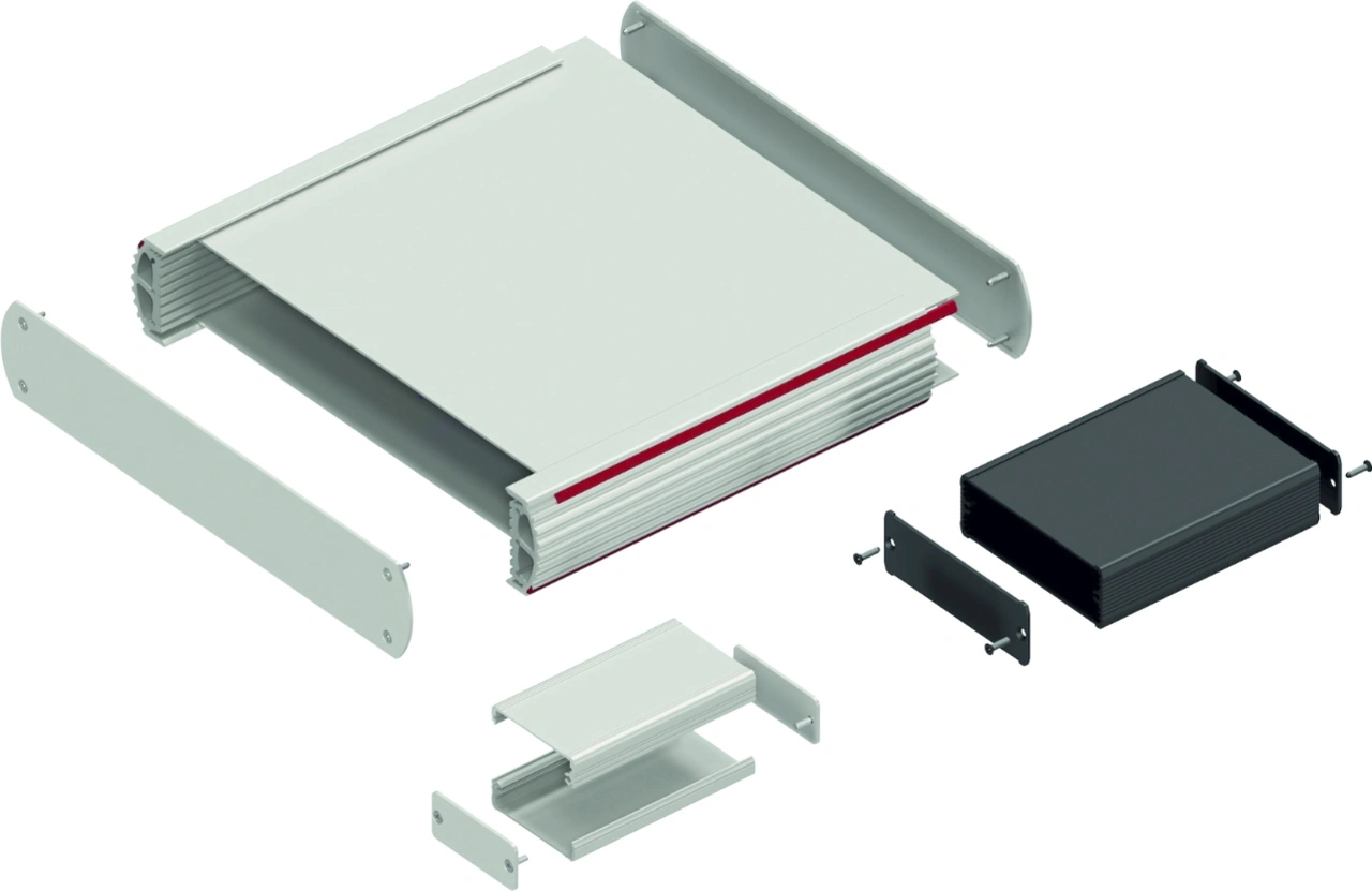 Bei Profilgehäusen bilden Aluminiumstrangpressprofile den Hauptgehäusekörper. Es kann sich dabei um geschlossene Tubusprofile oder einseitig offene Halbschalenprofile handeln. Die Breite und Höhe der Gehäuse werden durch die eingesetzten Profile bestimmt. Die Länge ist variabel. Konturelemente wie Führungsnuten, um Montage- oder Leiterplatten aufzunehmen, werden schon beim Strangpressen mit eingebracht. Den Abschluss der Gehäuse bilden front- und rückseitige Deckelplatten.