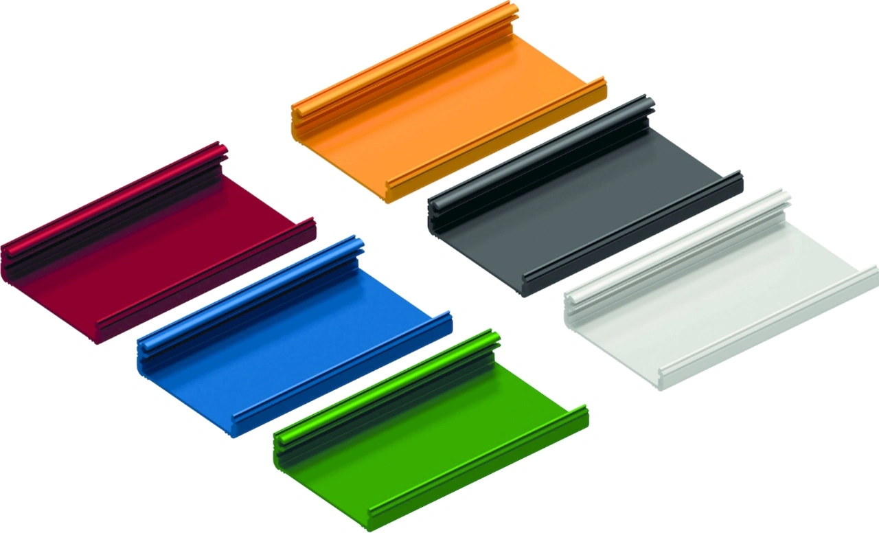 Neben dem klassischen farblosen Eloxieren lässt sich die Oxidschicht mit speziellen Eloxalfarben einfärben. Aluminiumgehäuse werden standardmäßig meist in den Oberflächenausführungen naturfarben eloxiert (ME) und schwarz eloxiert (SA) angeboten, jedoch sind andere Farben für eine individuelle Gestaltung eines Gehäuses auf Anfrage erhältlich. Typische Eloxalfarben sind Rot, Blau, Grün und Gold (Bild 3).
