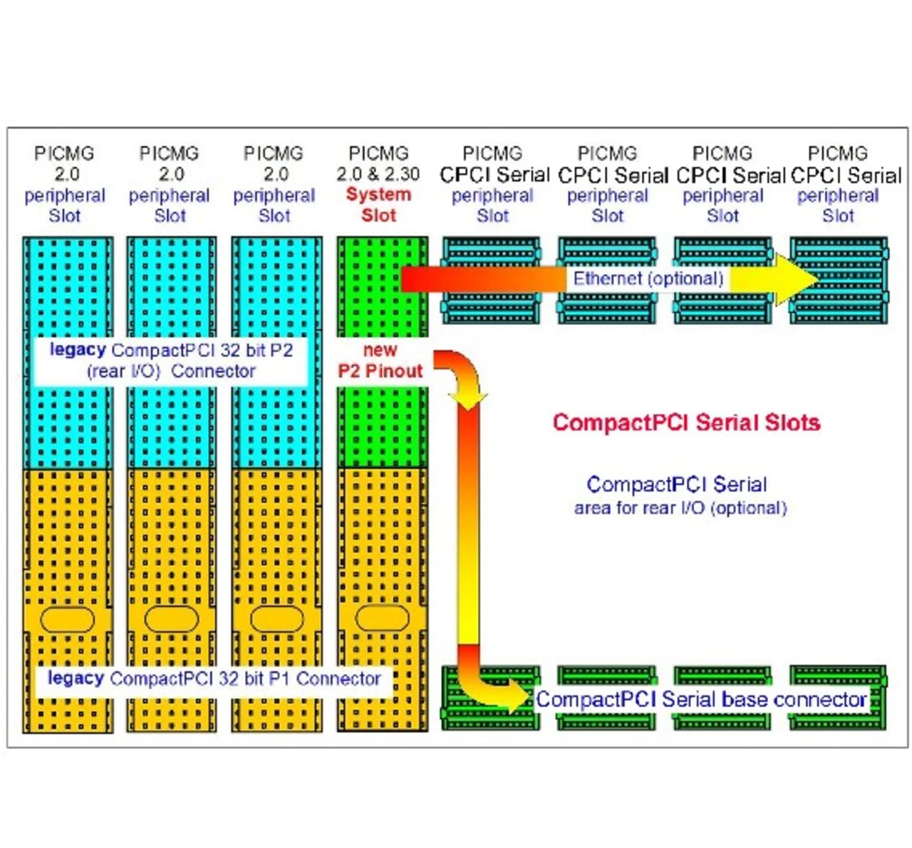 Für beide Spezifikationen hat Schroff Backplanes und komplette Systeme entwickelt. Als Backplanes stehen beispielsweise 8-Slot-Hybrid-Backplanes mit drei CompactPCI-Peripherie-Slots, einem CompactPCI-PlusIO-System-Slot und vier CompactPCI-Serial-Peripherie-Slots zur Verfügung. Erhältlich sind diese Backplanes in zwei verschiedenen Versionen, mit und ohne Rear I/O auf den CompactPCI-Serial-Slots. Sie stellen die Maximalkonfiguration für hybride Systeme dar und können somit für alle möglichen Applikationen eingesetzt werden. Weitere Backplanes mit kleinerer Slot-Anzahl sind bereits in Vorbereitung, wie zum Beispiel eine 5-Slot-Variante.