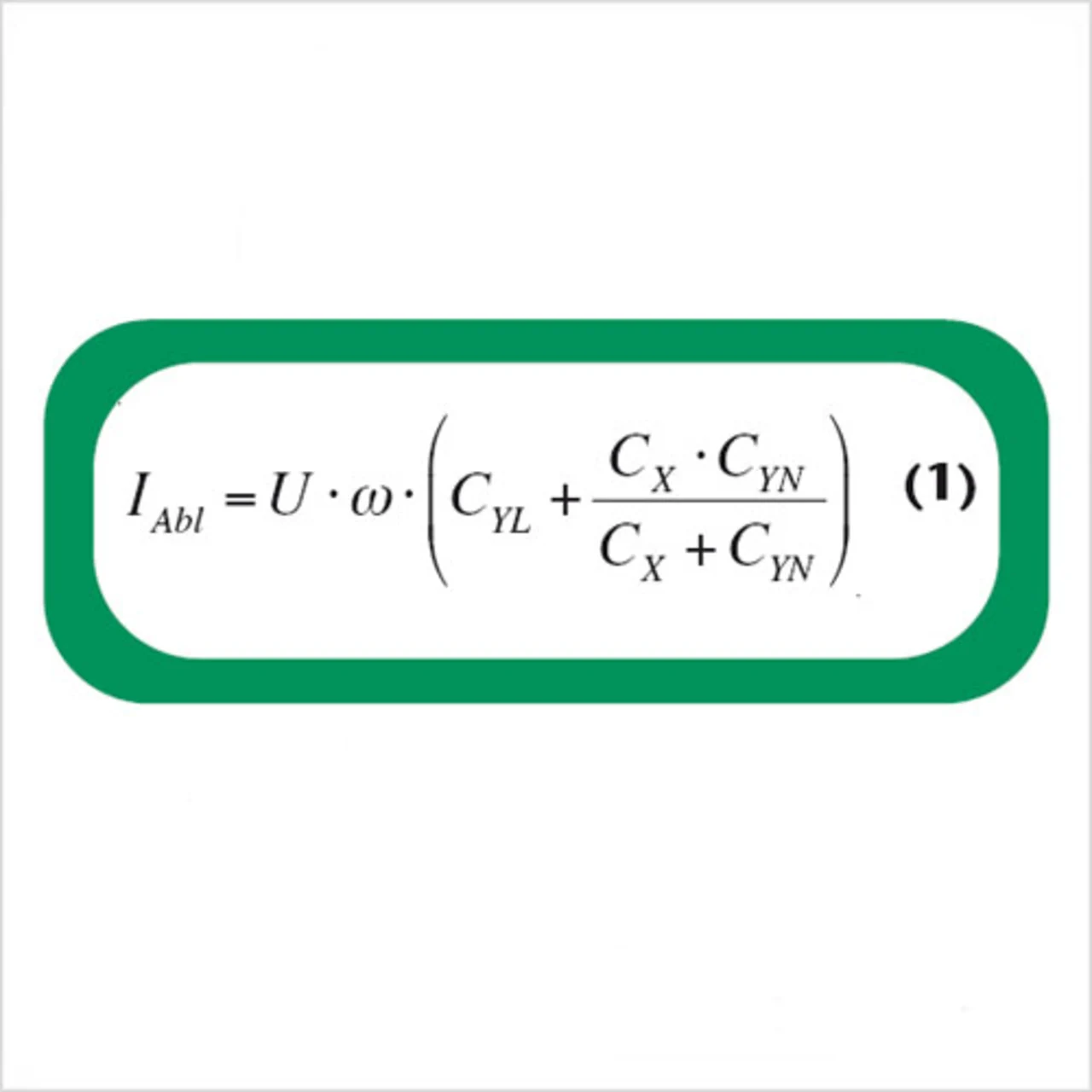 Aus diesem Grund lässt sich das Schaltbild des Filters (Bild 3) durch ein vereinfachtes Ersatzschaltbild (Bild 4) darstellen. Der Ableitstrom lässt sich nun mit Gleichung (1) berechnen. Den größten zu erwartenden Ableitstrom erhält man bei maximal tolerierbarer Netzspannung (+10%) und maximal tolerierbarer Kondensatorkapazität (+20%) sowie bei einer Netzfrequenz von 60 Hz. Ein idealer dreiphasiger Filter hätte unter der Voraussetzung einer symmetrischen Belastung keine Ableitströme, auch bei großen asymmetrischen Störungen.