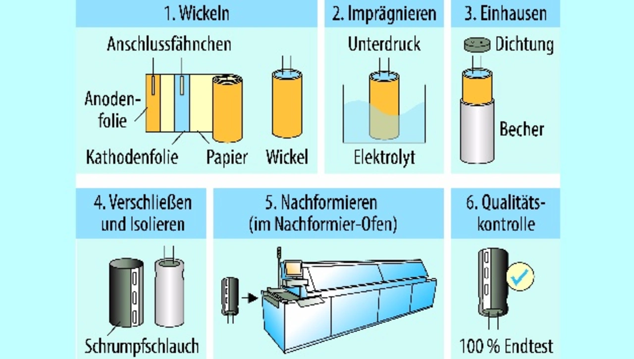 Die Herstellung von Elkos umfasst im Wesentlichen die folgenden Schritte: