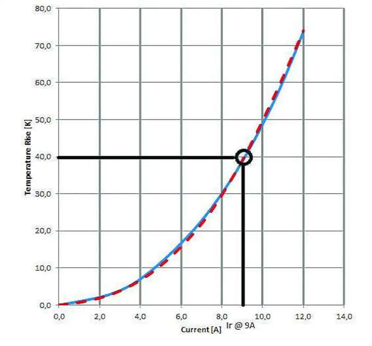 All diese Tatsachen weisen darauf hin, dass der Mitbewerber den Nennstrom seines Bauteils mit einem Messverfahren ermittelt hat, bei dem eine große Wärmeabfuhr vorliegen muss. Die geringen Abweichungen in der Kennlinie werden durch Bauteiltoleranzen hervorgerufen. Sie treten selbst beim Vergleich von baugleichen Spulen auf, die aus derselben Serie, desselben Herstellers stammen.