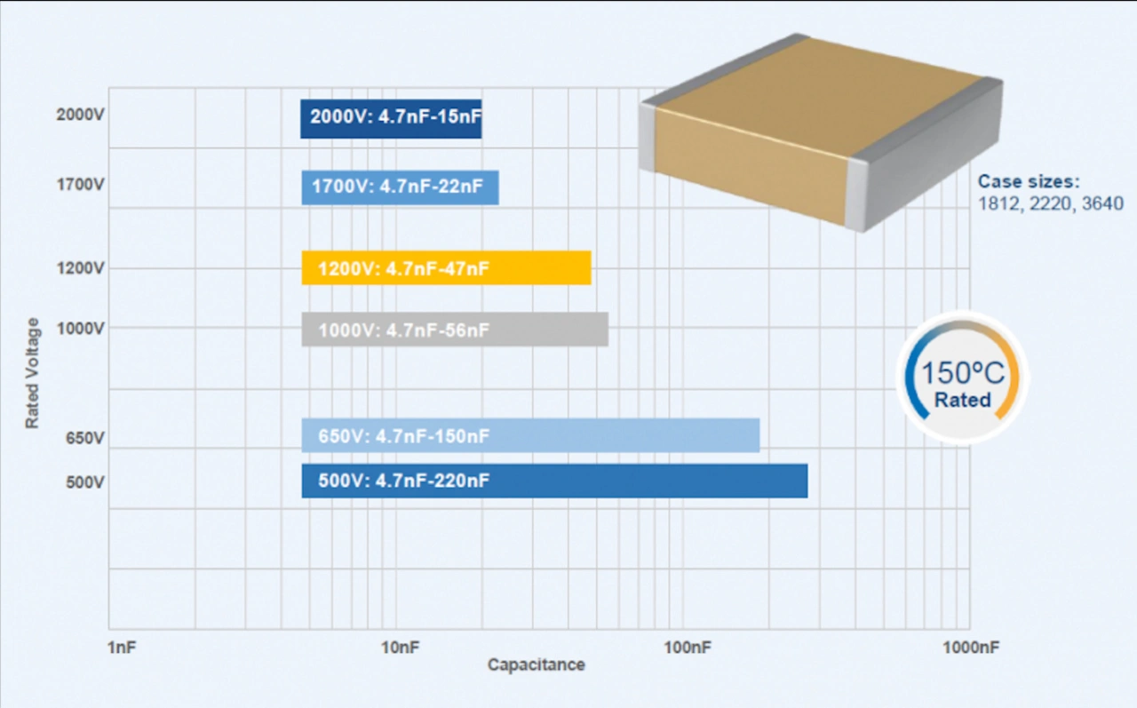 Dies erfordert Innovation. Kemet hat dafür eine Reihe von Keramikkondensatoren auf Basis seiner Klasse-1-Dielektrika entwickelt, die bei Spannungen und Temperaturen arbeiten, die höher sind als bei anderen auf dem Markt erhältlichen Kondensatoren (Bild 3). Dadurch lassen sie sich näher an den heißen Leistungshalbleitern platzieren. Damit steigt die Leistungsdichte und die Produkte schrumpfen.