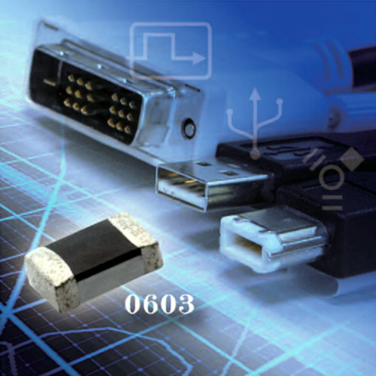 Ein derartiges Bauelement mit niedriger Impedanz, wie sie für eine minimale Verzerrung der Hochgeschwindigkeitssignale ausschlaggebend ist, ist Bestandteil der »PESD«-Familie von Tyco (Bild 4). Diese Entstörbauteile sind aus leitenden Partikeln hergestellt, die in einer nichtleitenden Matrix verstreut sind. Im normalen Betrieb sind der Leckstrom und die Kapazität sehr niedrig und zwar aufgrund der physischen Abstände zwischen den leitenden Partikeln. Wenn die Spannung eines ESD-Impulses die Auslöseschwelle überschreitet, erfolgt ein Überschlag über die leitenden Partikel hinweg, wodurch ein sehr niederohmiger Pfad entsteht. Die übliche Kapazität des PESD-Bauteils ist 0,20 pF bei 1 MHz mit einem maximalen Leckstrom von 10 nA. Die ESD-Fähigkeit laut IEC 61000-4-2 ist 15 kV (max.) für Berührungsentladung, 25 kV (max.) für Entladung über die Luft und 1 kA (min.) Stromstoßbeständigkeit (Berührung, Ebene 4, 8 kV).