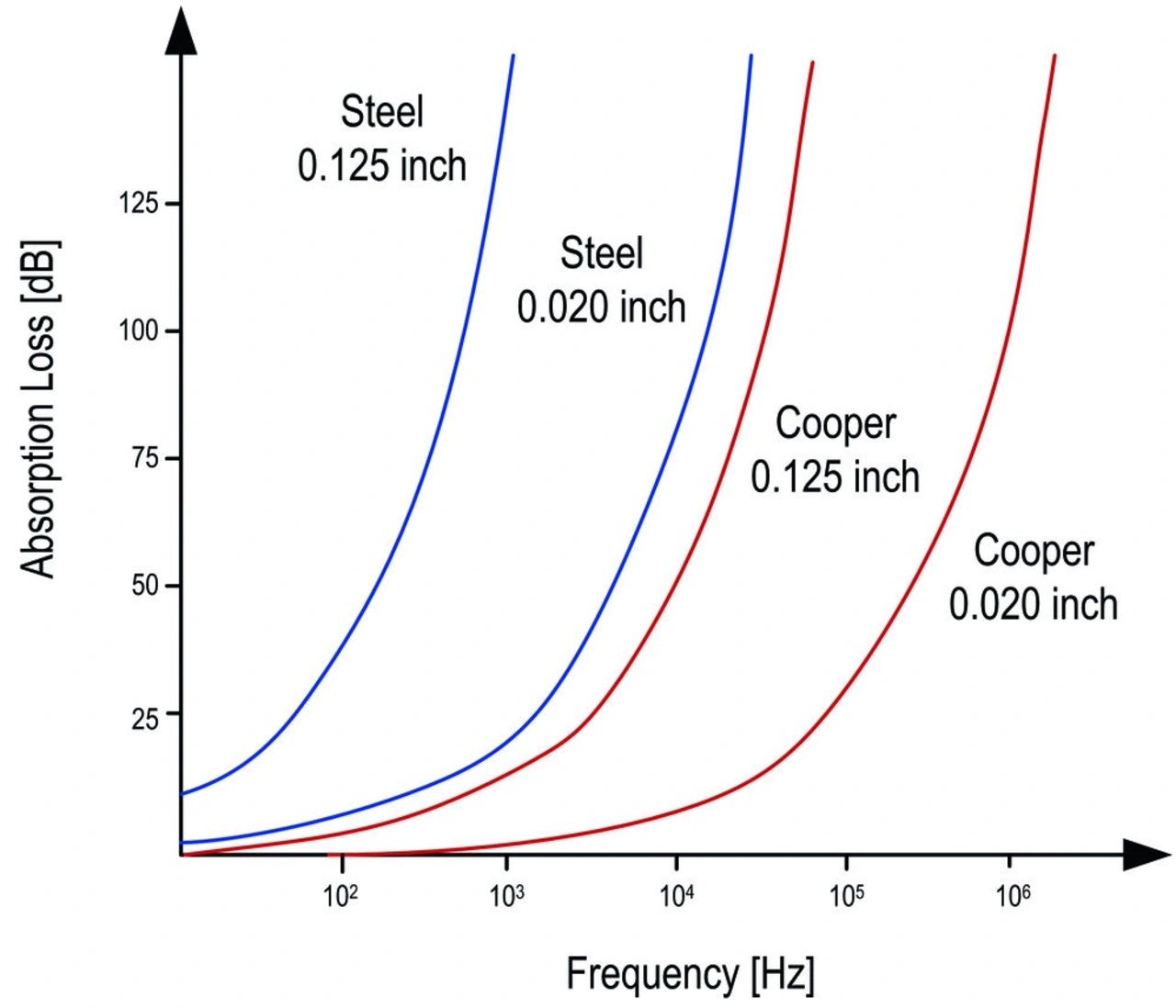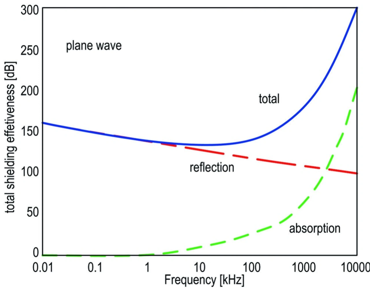 Hauptbestandteile von Metallschirmungen sind in der Regel Kupfer, Aluminium, Metalllegierungen und Verbundmischungen – ausgeführt als ein Gehäuse, das die Quelle (Spule) umfasst, um Störungen zu reflektieren oder zu absorbieren. Stärke und Typ des Materials können nach Faktoren wie Schirmungseffizienz, Frequenz (Bild 11) und Kosten ausgewählt werden. Interessanterweise integrieren einige Hersteller von Eisenpulverspulen eine Metallbrücke auf der Spule, um die Schirmungsleistung zu optimieren.