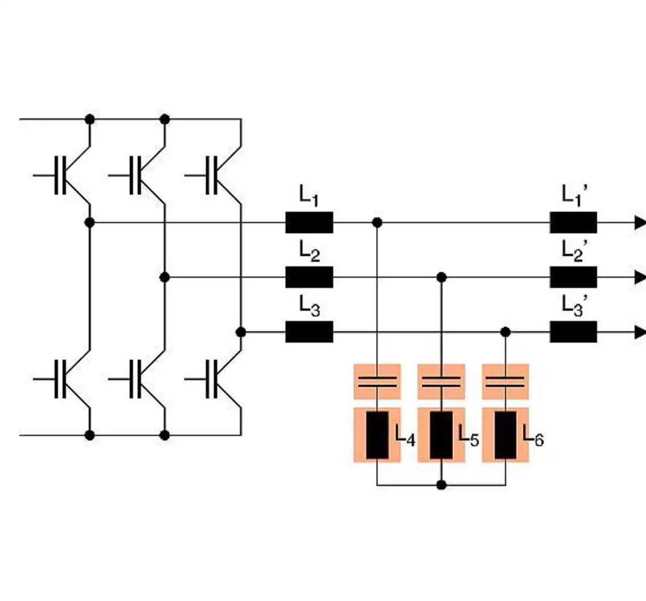 Allerdings sind noch Reste der Taktfrequenz und deren Harmonischen vorhanden. Die Drosseln L1bis L3 sowie L1‘ bis L3‘ (Bild 1) tragen den gesamten Laststrom des Umrichters. Der Wert ihrer Induktivität sowie das Kernmaterial bestimmen die Filterwirkung dieser Drosseln für die Taktfrequenz. Hohe Induktivitätswerte bedingen jedoch ein großes Bauvolumen, erheblichen Kostenaufwand sowie entsprechende Kühlung. Gerade bei Umrichtern von Windkraftanlagen sind dadurch Grenzen gesetzt.
