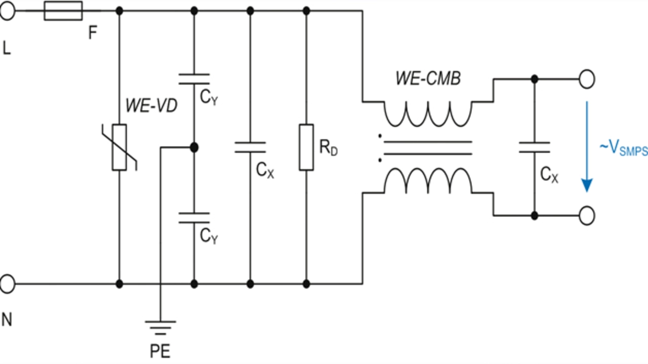 Bild 3 zeigt den schematischen Aufbau eines einfachen Einphasennetzfilters. Für deren Aufbau bietet Würth Elektronik in verschiedenen Bauformen Netzdrosseln an, zum Beispiel die »WE-CMB«-Serie.