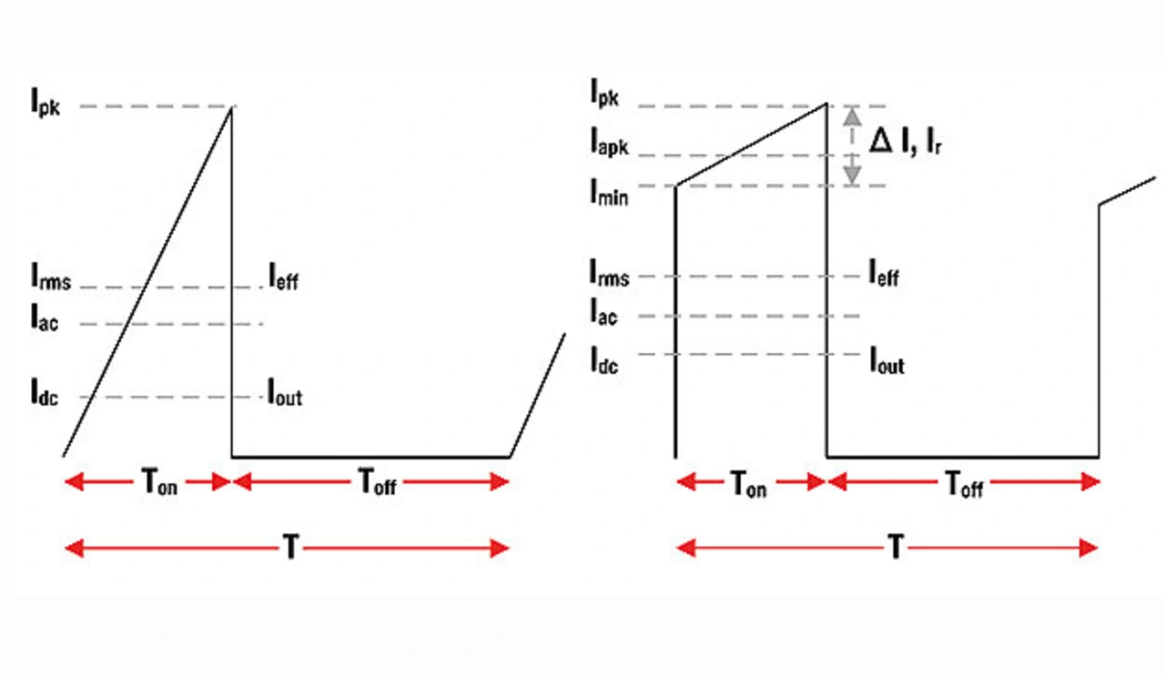 Wirbelstromverluste entstehen dadurch, dass der aus leitendem Material bestehende Kern selbst eine Windung im Magnetfeld darstellt. Allerdings ist sein spezifischer Widerstand im Allgemeinen höher als der des Wicklungsleiters, im Falle von Ferriten sogar wesentlich höher. Daher werden die Wirbelströme durch den spezifischen Widerstand des Kernmaterials, durch temperaturbedingte Veränderungen und durch die an den Wicklungen anliegenden Spannungen beeinflusst. Je höher die Spannung ist, desto größer ist der induzierte Strom unabhängig von der Dauer (Impulsbreite) und desto höher fällt der Verlust aus (Bild 2).