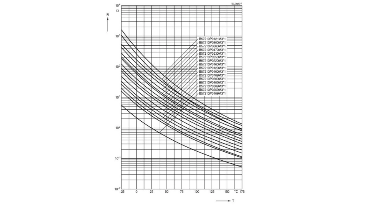 NTC-Thermistoren sind eine elegante Lösung, hohe Einschaltströme aus dem Netz zu begrenzen. Diese keramischen Bauelemente – auch Heißleiter genannt – sind temperaturabhängige Widerstände, deren Widerstandswert mit steigender Temperatur fällt. Sie weisen bei Raumtemperatur einen bestimmten Widerstandswert R25 auf, der den Einschaltstrom begrenzt. Durch den weiteren Stromfluss erwärmt sich das Bauelement und der Widerstand fällt auf sehr geringe Werte, die typabhängig deutlich unter 1 Ω liegen. Entsprechend gering sind dabei auch die Verluste bei Nennstrom. Bild 2 zeigt typische Widerstandsverläufe verschiedener NTCs über die Temperatur.
