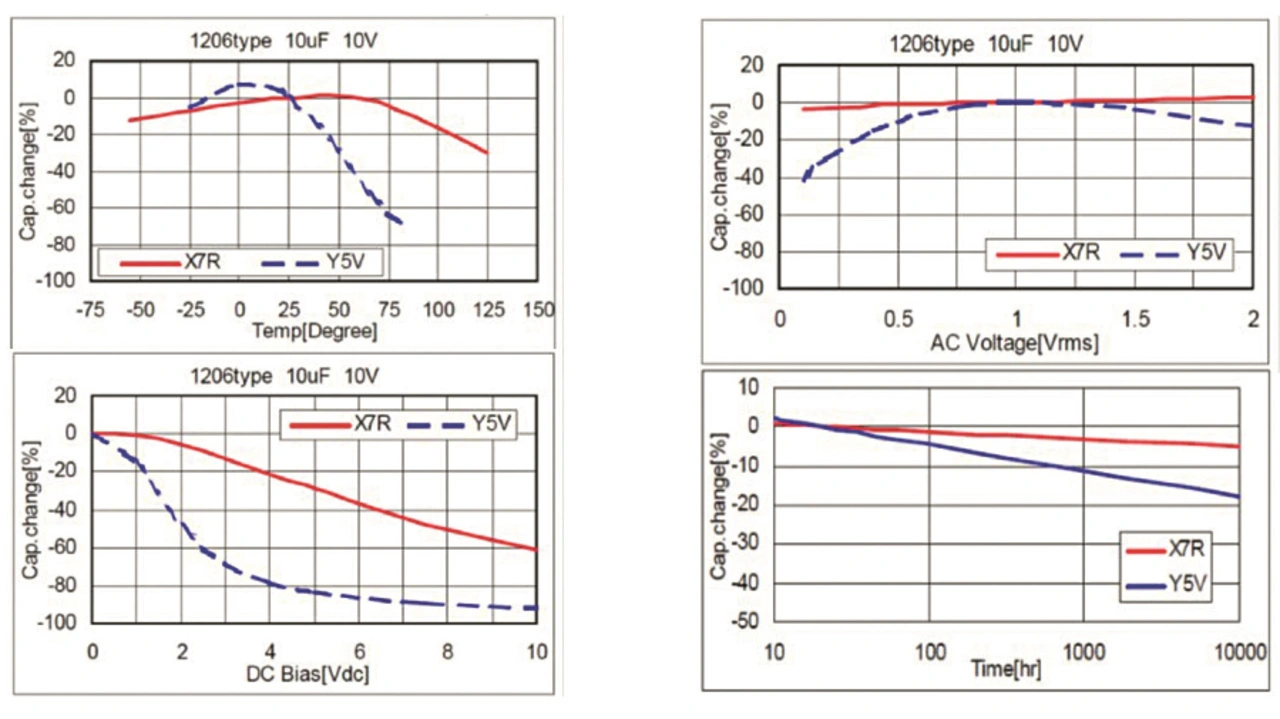 Vielschicht-Keramikkondensatoren (Multi Layer Ceramic Capacitor, MLCC) zählen heute zu der am meisten verbreiteten Bauform unter den Keramikkondensatoren. Nicht ohne Grund: Sie wurden deutlich optimiert hinsichtlich immer höherer Nennkapazitäten und immer kleinerer ESR-Werte (Equivalent Series Resistance, Serienersatzwiderstand). Einher geht dies aber auch mit immer größeren Driften – vor allem gegenüber Gleichspannung, Temperatur und Zeit (Bild 1).