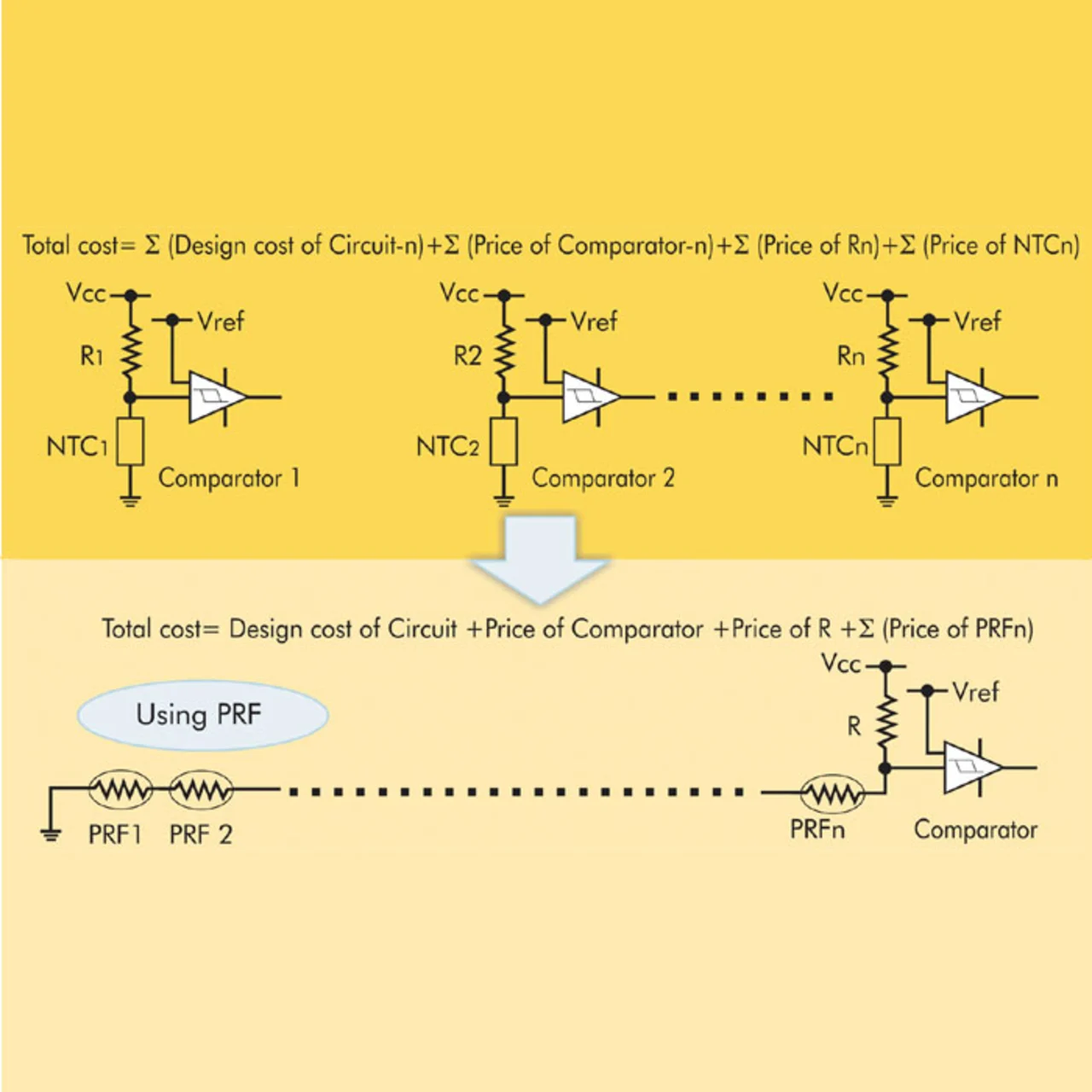 Das in diesem Beitrag beschriebene Verfahren benötigt nur eine einzige Erfassungsschaltung, solange an jedem zu überwachenden Punkt ein PTC-Chipwiderstand platziert wird. Damit lassen sich nicht nur die Kosten der Schaltung reduzieren, sondern auch der Zeitaufwand für das Design und die Verifikation wird geringer (Bild 4).