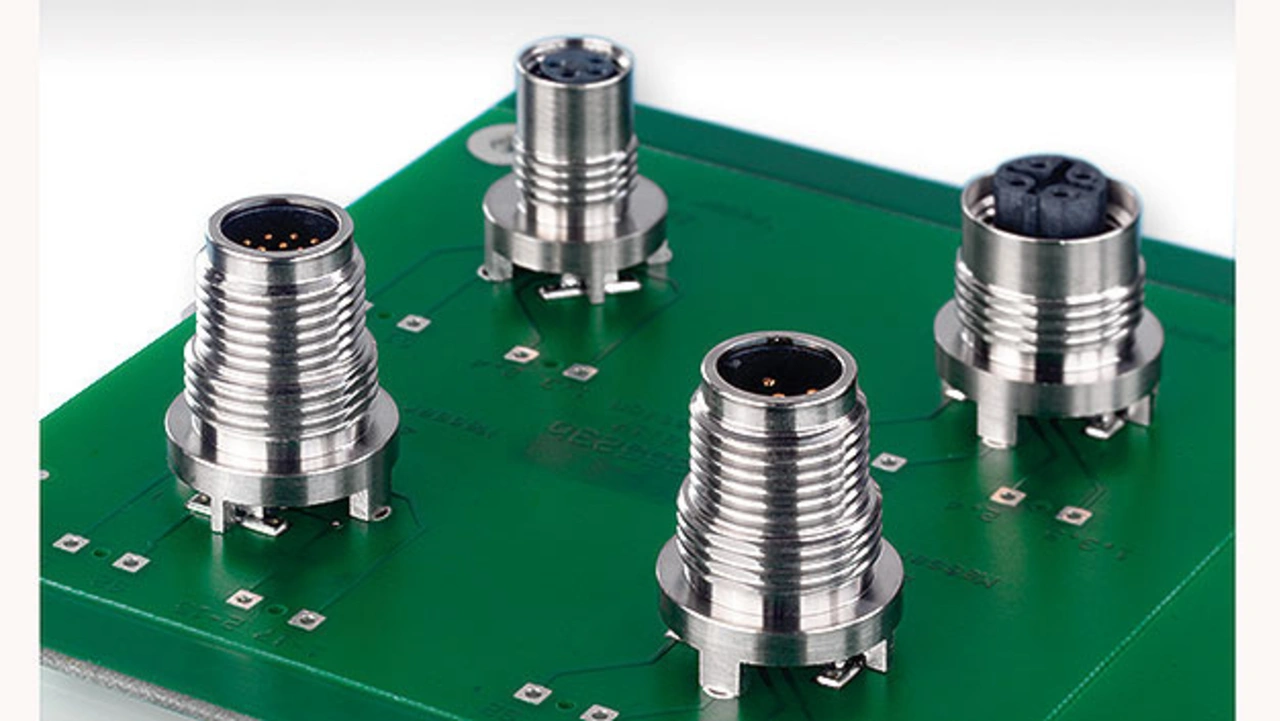 Daneben verfügen sie über integrierte Leiterplattenauflagen für drei gängige Leiterplattenstärken (1,0 mm, 1,6 mm und 2,0 mm). Die Buchsen- und die Stiftausführungen haben das gleiche Layout und können für Gehäuse mit integriertem M12-Gewinde verwendet werden. Es sind Ausführungen mit verschiedenen Kodierungen lieferbar. Auf Wunsch ist auch eine 360°-Schirmung erhältlich.