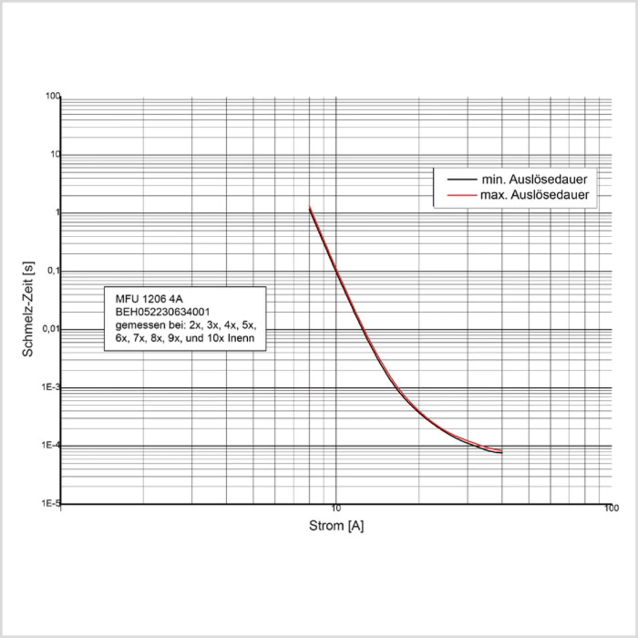 Die zum Schmelzen der Sicherung erforderliche Energie bestimmt sich aus dem I²t-Wert, auch Schmelzintegral genannt. Nimmt der Überstrom zu, verkürzt sich die Abschaltzeit beziehungsweise die Zeit für das Öffnen der Sicherung. Bei doppeltem Bemessungsstrom sollte eine Sicherung meist innerhalb 1 s bis 3 s öffnen, beim zehnfachen Bemessungsstrom hingegen in weniger als 0,1 ms.