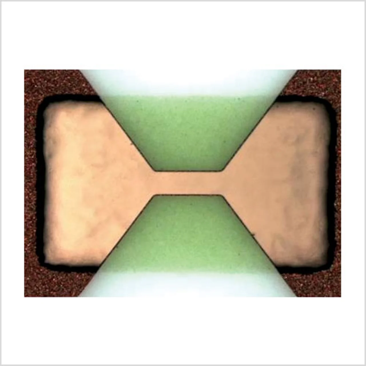 Eine genaue Kontrolle über die Geometrie des Sicherungselements ist erforderlich, um den Bemessungsstrom von Chipsicherungen festzulegen. Die Strukturierung des Sicherungselements mit einem fotolithografischen Prozess ermöglicht präzise geometrische Konturen und löst unbenutztes leitfähiges Material zwischen den Anschlüssen heraus.