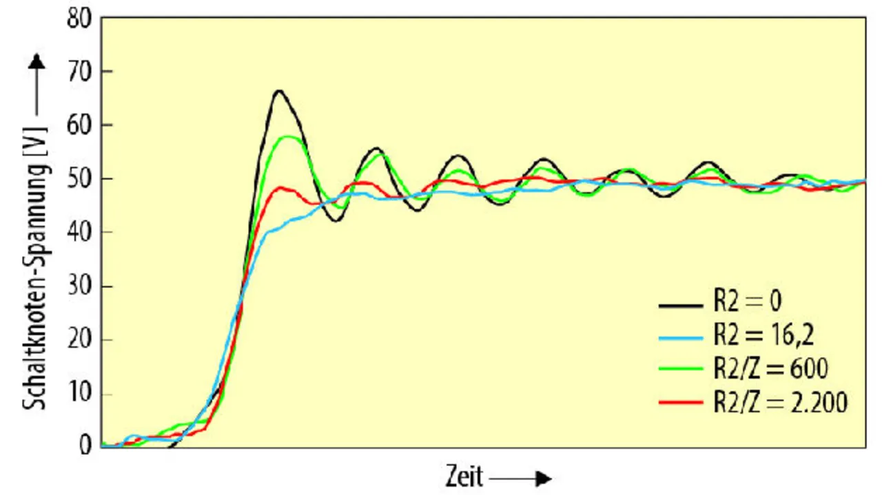 Es zeigt sich, dass das Bauteil mit der höchsten Impedanz bei der Überschwingfrequenz die stärkste Verringerung sowohl der Amplitude als auch der Dauer dieser unerwünschten Schwingung (vgl. Bild 7) ermöglicht. Zur richtigen Auswahl kann das Produktdatenblatt herangezogen werden oder es wird eine Auswahl über den Component Selector von Würth Elektronik getroffen.