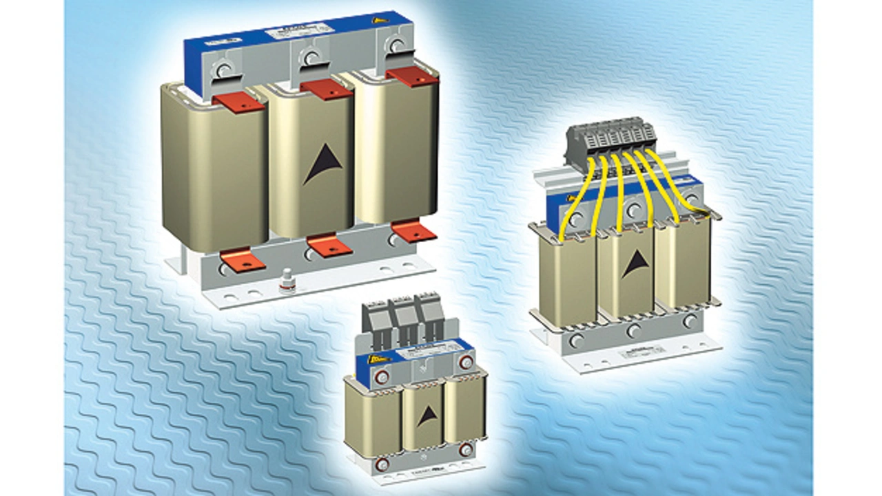 du/dt-Drosseln, die auch als Motordrosseln bezeichnet werden, sind typische Bauelemente, mit denen sich jene Störungen unterdrücken lassen, welche durch lange Motorleitungen entstehen. Durch diese Längsdrosseln fließt der gesamte Motorstrom. Steile Strom- und Spannungsflanken am Ausgang des Frequenzumrichters werden durch die Induktivität abgeflacht und die parasitären Kapazitäten der Motorkabel werden weniger stark ge- und entladen. Motordrosseln werden hauptsächlich zum Schutz der Motorwicklungen vor Spannungsspitzen eingesetzt. Zur Auswahl stehen beispielsweise Bauelemente der Epcos-Serie B86301U* (Bild 2), die für eine Bemessungsspannung von 520 V (AC) ausgelegt sind. Je nach Typ eignen sich diese für eine Stromtragfähigkeit von 8 A bis 1500 A. Zulässig sind ferner Motorleitungen mit einer Länge bis etwa 100 m bei Motorfrequenzen von 0 bis 400 Hz.