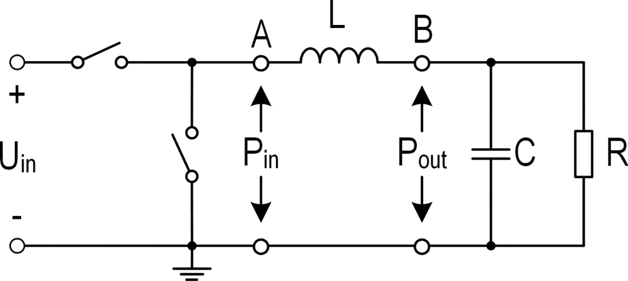Empirische Daten werden mit einem DC/DC-Wandler erfasst, wie er in der nachfolgenden Abbildung dargestellt. An die Induktivität wird eine pulsierende Spannung angelegt, wobei die Eingangsleistung Pin und die Ausgangsleistung Pout gemessen werden. Auf dieser Basis wird Ploss = Pin – Pout ermittelt und die Wechselstromverluste der Spule PAC werden separiert. Dieser Vorgang wird für unterschiedlichste Parametereinstellungen – beispielsweise Schwankungen der magnetischen Aussteuerung, Schaltfrequenz, Ripple-Strom – gemessen, und die empirischen Daten werden aufgezeichnet. Mithilfe dieser empirischen Daten wird das Modell zur Berechnung der AC-Verluste erstellt: