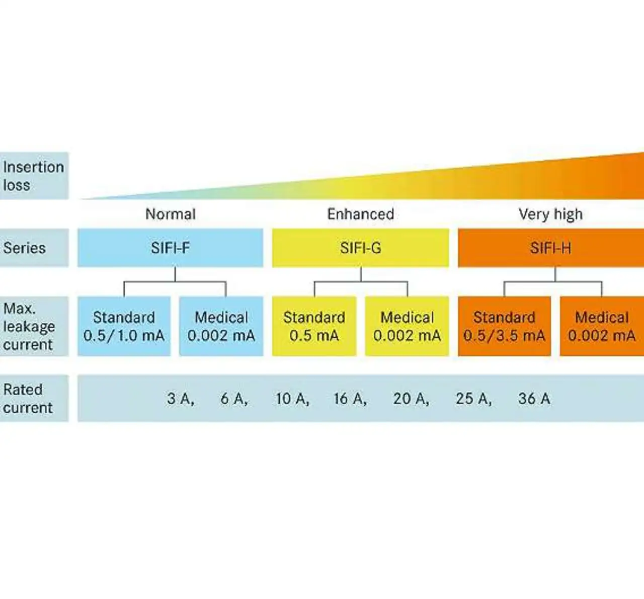 Wenn anhand der Dämpfungsanforderungen die passende SIFI-Familie (F, G oder H) gewählt ist, gilt es den Ableitstrom zu betrachten. Alle neuen SIFI sind sowohl als Standard- als auch als Version für die Medizintechnik verfügbar.