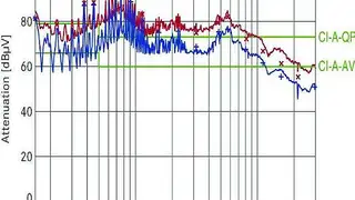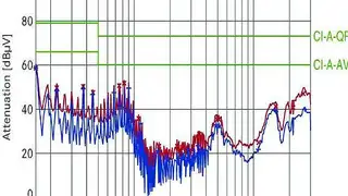 Damit konnten die Störspannungen auf Werte unterhalb der Grenzen für Klasse A nach DIN EN 55011 (2007) reduziert werden.