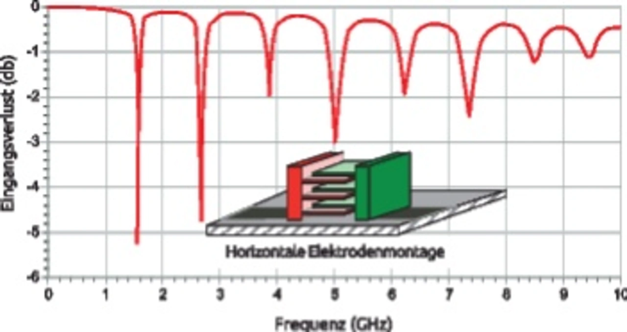 Zu den wichtigen Leistungskennzahlen zählt auch die Serienresonanzfrequenz (SRF), die durch unterschiedliche Lagenzahlen beeinflusst wird. Diese Schwankung kann sich negativ auf die Leistung von LC-HF-Filtern auswirken, in denen diese Kondensatoren verwendet werden. Bandpassfilter zum Beispiel nutzen oft die Resonanzfrequenzen des Kondensators, um seine Leistung zu formen. Das bedeutet, dass die Filter bei unterschiedlichen Lagenzahlen möglicherweise nicht wie vorgesehen funktionieren und die Strahlungsemissionen im fertigen Produkt die FCC- oder ETSI-Anforderungen nicht einhalten. Änderungen der Kondensatorleistung von Los zu Los können zu kostspieligen Produktrückrufen führen.