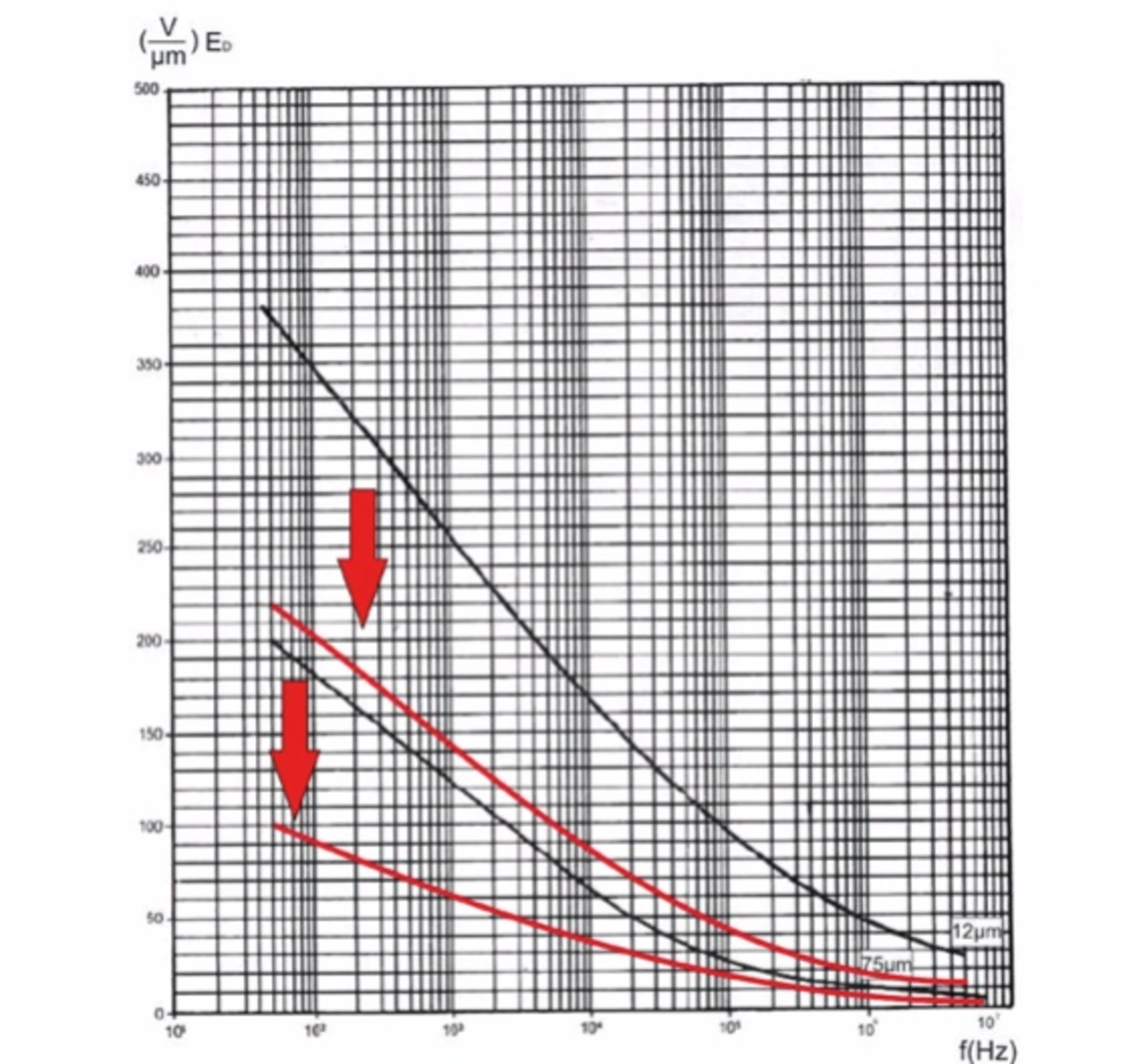 Fazit: Neben der Alterung durch Temperatur und die Schwächung des Materials durch Teilentladungen bestimmt also auch die Frequenz maßgeblich die Überlegungen zur Auslegung eines elektrischen Gerätes.