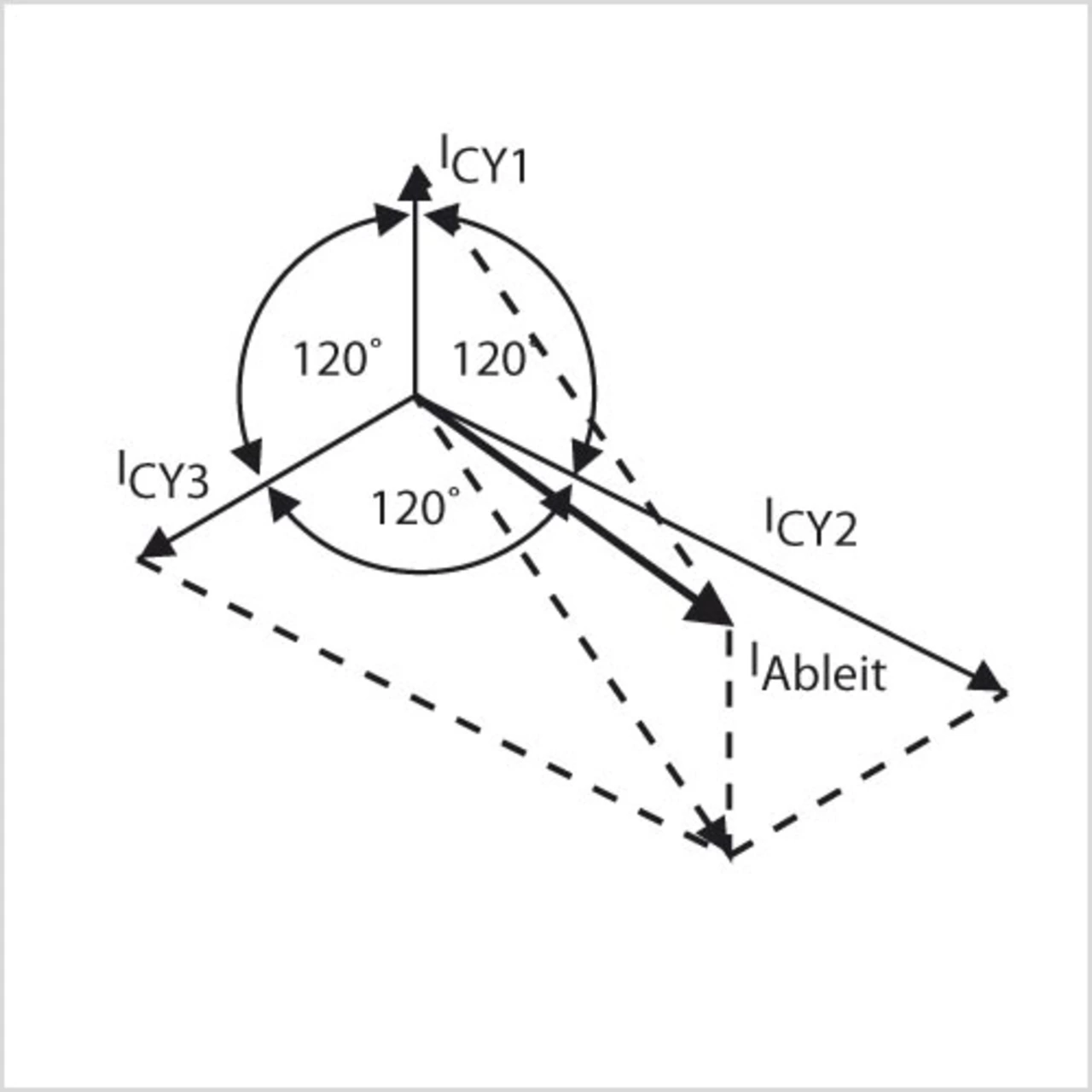 Bei 3-Phasen-Filtern werden die Ableitströme der einzelnen Phasen vektoriell zu einem resultierenden Ableitstrom addiert (Bild 5).