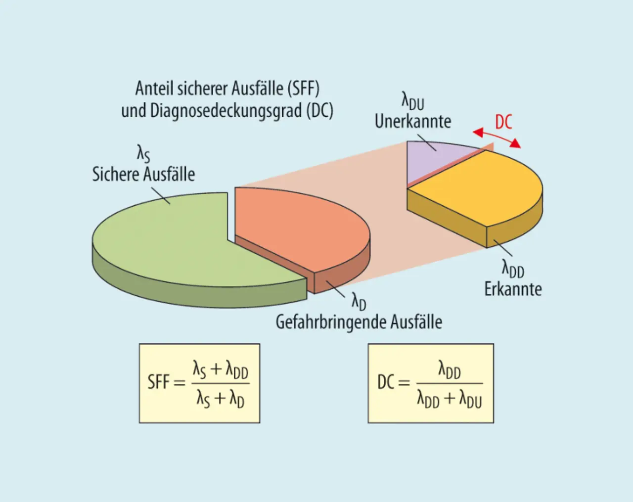 Ein Fehler gemeinsamer Ursache wirkt sich auf beide Relais gleichermaßen aus und macht die Redundanz damit wirkungslos. Zur Ermittlung des CC-Fehleranteils liefert EN/IEC 62061 entsprechende Kriterien. Auf redundante Relais wirkende Prinzipien können thermisch, magnetisch, elektrisch oder mechanisch sein, wie Umgebungstemperatur, Beeinflussbarkeit durch Magnetfelder – insbesondere bei gepolten Relais –, Überstrom oder mechanische Überbelastung. Eine weitere Reduzierung des Anteils gefährlicher Fehler ist durch Diagnose möglich, da ein prozentualer Fehleranteil durch Maßnahmen der Überwachung entdeckt werden kann (Bild 2). IEC 61508-2 beschreibt Anforderungsstufen zur Erkennung von Fehlerursachen. Zwangsgeführte Kontakte bieten dabei den höchst möglichen Diagnosedeckungsgrad von 99 %.