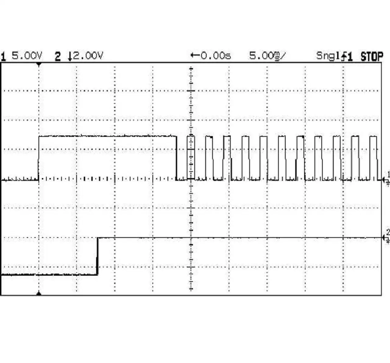 Das Oszillogramm in Bild 1 zeigt exemplarisch eine Steuervariante für ein Relais mit 6 V Nennspannung. Bei der hier dargestellten Ansteuerung ist als Amplitude 8 V eingestellt. Auf Kanal 1 (oben) ist das Ansteuersignal, auf Kanal 2 (unten) das Schalten des Arbeitskontaktes erkennbar. Aber die Amplituden von Spannung und Strom an der Relaisspule können auch wesentlich höhere Werte annehmen.