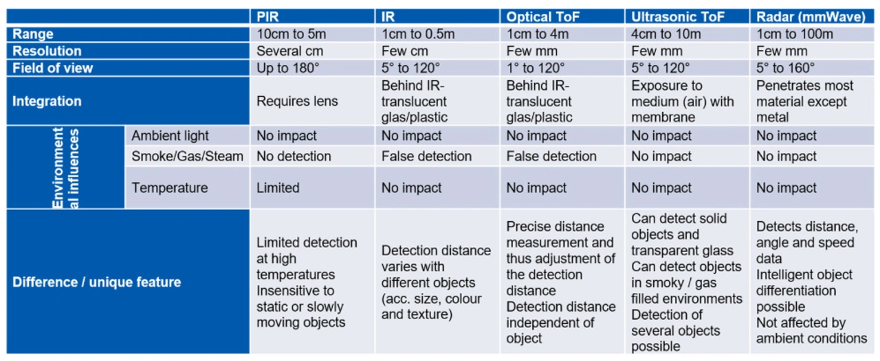 Je nach verwendeter Technik können die Taster aber auch mit Problemen zu kämpfen haben, vor allem mit Fehlauslösungen, wobei ToF hier relativ robust ist. Zwei Beispiele: Ein Insekt fliegt direkt am Taster vorbei und löst einen Impuls aus. Im Freien eingesetzt, können Regentropfen oder Schneeflocken in den Sensorbereich geraten, was ebenfalls zu einem unerwünschten Auslösen führen kann. Neben Fehlauslösungen kommt aber ein weiterer Aspekt hinzu: Sehbehinderte Menschen erkennen weder den Abstand zum Taster noch ob dieser ausgelöst hat, falls kein akustisches Feedback zusätzlich zum optischen integriert ist.