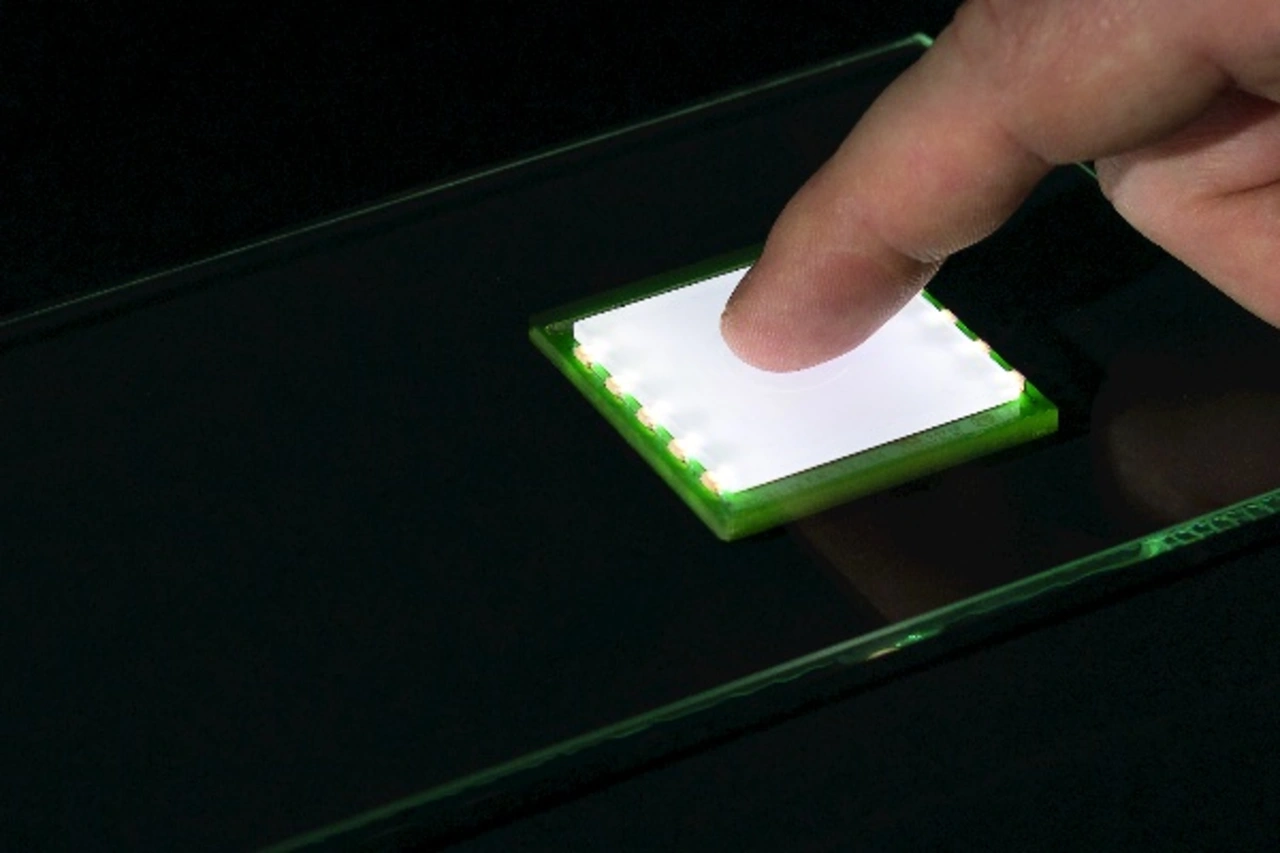 Der einzelne Taster kann bei Bedarf als Leiterplatte mit mehreren Sensorflächen ausgeführt sein. Eine solche kompakte Funktionseinheit vermeidet die Integration mehrerer Einzeltaster und deren Verdrahtung untereinander. Weil das Board nur einen Controller hat, ergibt sich daraus nicht zuletzt ein Preisvorteil. Eine lineare Tastengruppe mit sechs Tasten und 24-V-Stromversorgung befindet sich derzeit als weiteres Standardmodul in der Entwicklung – ebenso wie ein kapazitiver Einzeltaster im Einbaugehäuse, der auf die gleiche Weise wie mechanische Einzeltaster in Bedienfronten integriert wird. Beide Varianten kommen demnächst auf den Markt.