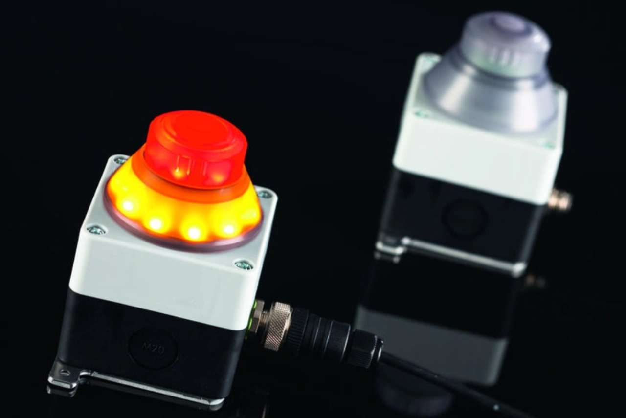 Der Schlegel Not-Halt QRBDUV hat neben dem rot beleuchteten Pilzknopf zusätzlich einen gelb beleuchteten Blockierschutzkragen. Möchte man, dass ein betätigter Not-Halt leichter zu identifizieren ist, kann der Blockierschutzkragen durch entsprechende Verdrahtung optional auch blinken. Der Not-Halt hat die Schutzart IP65 und ist als Bausatz für den Innenbereich oder als Gehäuseversion mit M12-Anschluss verfügbar.
