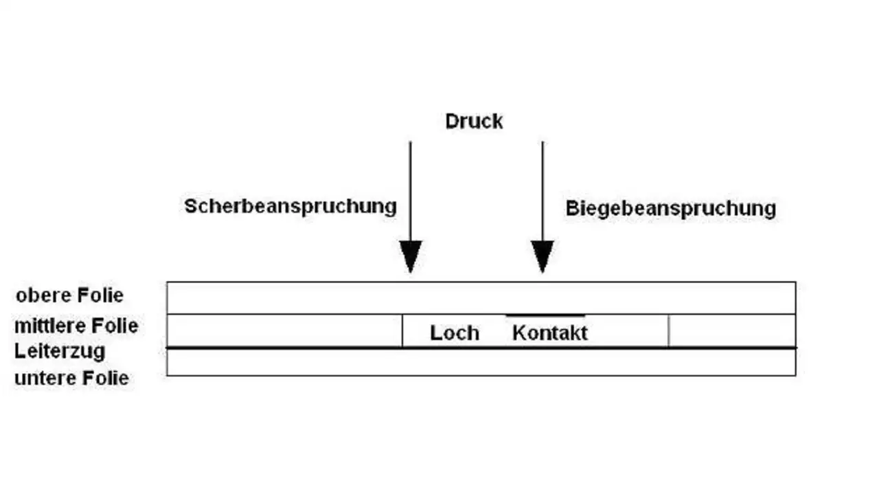 Generell bestehen Folientastaturen aus einem Folienverbund, der sich aus mindestens vier Folienebenen zusammensetzt (Bild 1). Als Dekorfolie kommen Polyesterfolien mit Dicken von 0,10 mm bis 0,25 mm zum Einsatz. Die Verklebung und Distanzierung der einzelnen Schichten erfolgt durch beidseitig mit Acrylatklebern beschichtete Polyesterträger in Stärken zwischen 0,05 mm und 0,30 mm. Die Schaltung der Folientastatur wird entweder mit Polymerpasten mit einem hohen Silberanteil auf Polyesterfolien im Siebdruck aufgebracht oder als Leiterplatte realisiert. Bei der Folienschaltung ist es möglich, nichtleitende Stellen der Schaltungen mit einem UV-härtenden Isolationslack zu überdrucken. Auf diese Weise lassen sich auch Brücken (vergleichbar mit Durchkontaktierungen auf Leiterplatten) realisieren. Als letzte Ebene wird die Klebefolie aufgebracht. Diese lässt sich individuell an den Anwendungsfall und das Gehäusematerial anpassen.