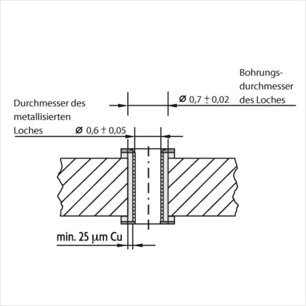 Die Einpresstechnik lässt sich einfach handhaben, wenn man die Spezifikationen einhält. Bei der Herstellung einer geeigneten Leiterplatte zum Beispiel sind im Wesentlichen drei Parameter zu beachten: der Bohrdurchmesser und der Durchmesser des metallisierten Einpressloches, die Dicke der Kupferhülse im Einpressloch sowie die Leiterplatten-Oberfläche.