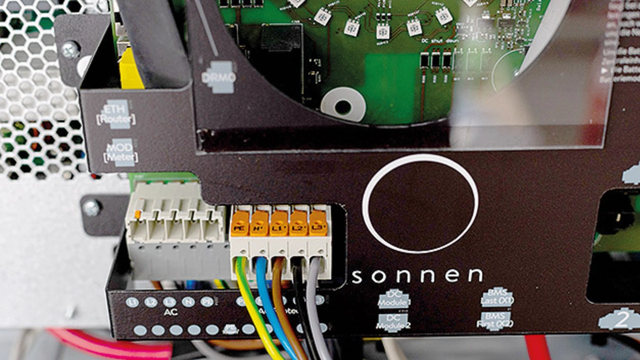 Angeschlossen wird der Stromspeicher mit dem Leiterplatten-Steckverbinder MCS Maxi 6 der Serie 831 von Wago. Der Leiterplatten-Steckverbinder fungiert als Schnittstelle zwischen der Leiterplatte des Stromspeichers und den elektrischen Leitern, die die sonnenBatterie mit weiteren Geräten verbinden. Durch ihre Steckfunktion kann die Serie 831 besonders in engen Bauräumen die Verdrahtung erleichtern.