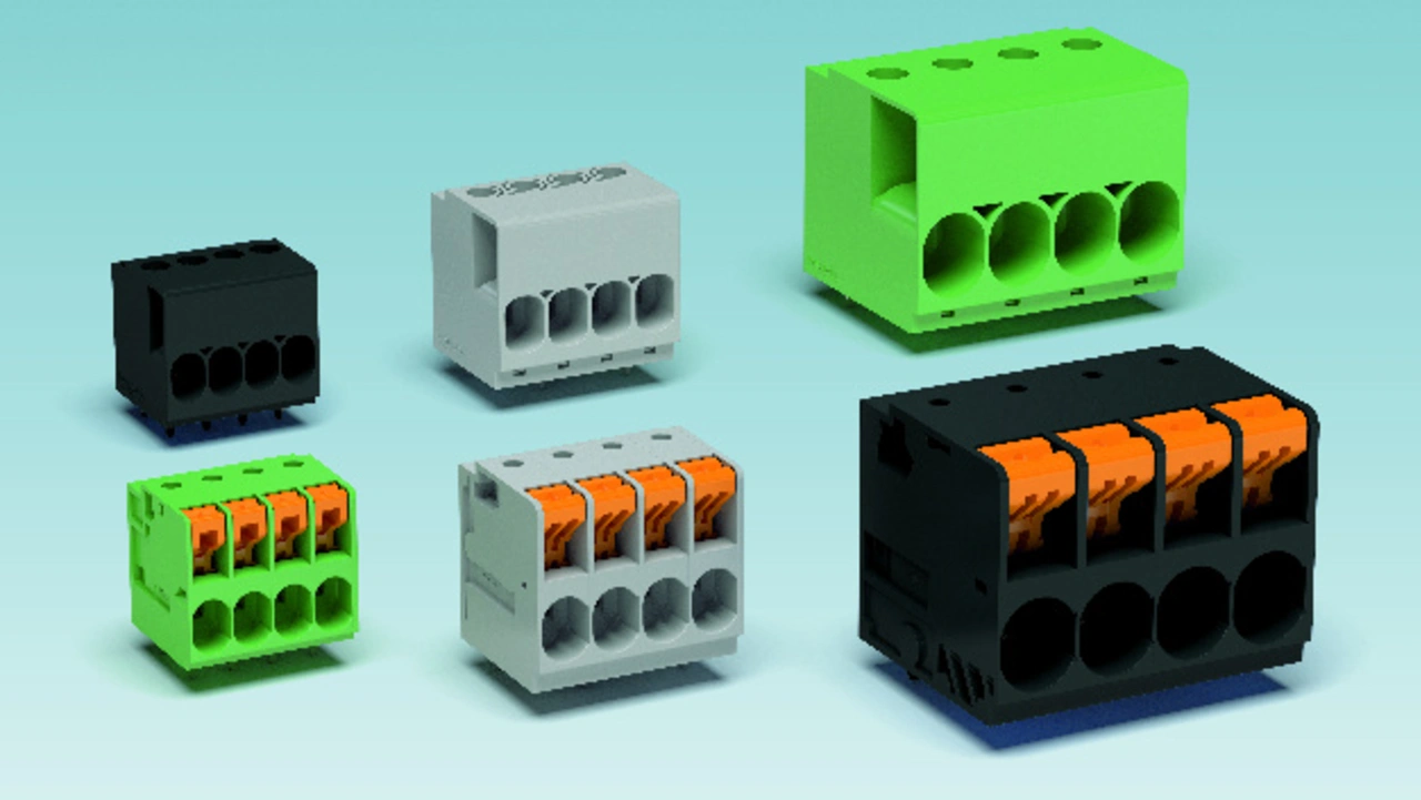 Die neuen, wellenlötfähigen Leiterplattenklemmen im Twin-Design sind eine Lösung für wirtschaftlich produzier- und einfach adaptierbare Geräte. Dank der identischen Baugröße und des einheitlichen Designs können Hersteller marktspezifische Geräte mit Schraub- oder Push-in-Federanschluss entwickeln, ohne das Geräte-Design oder das Leiterplatten-Layout anpassen zu müssen.
