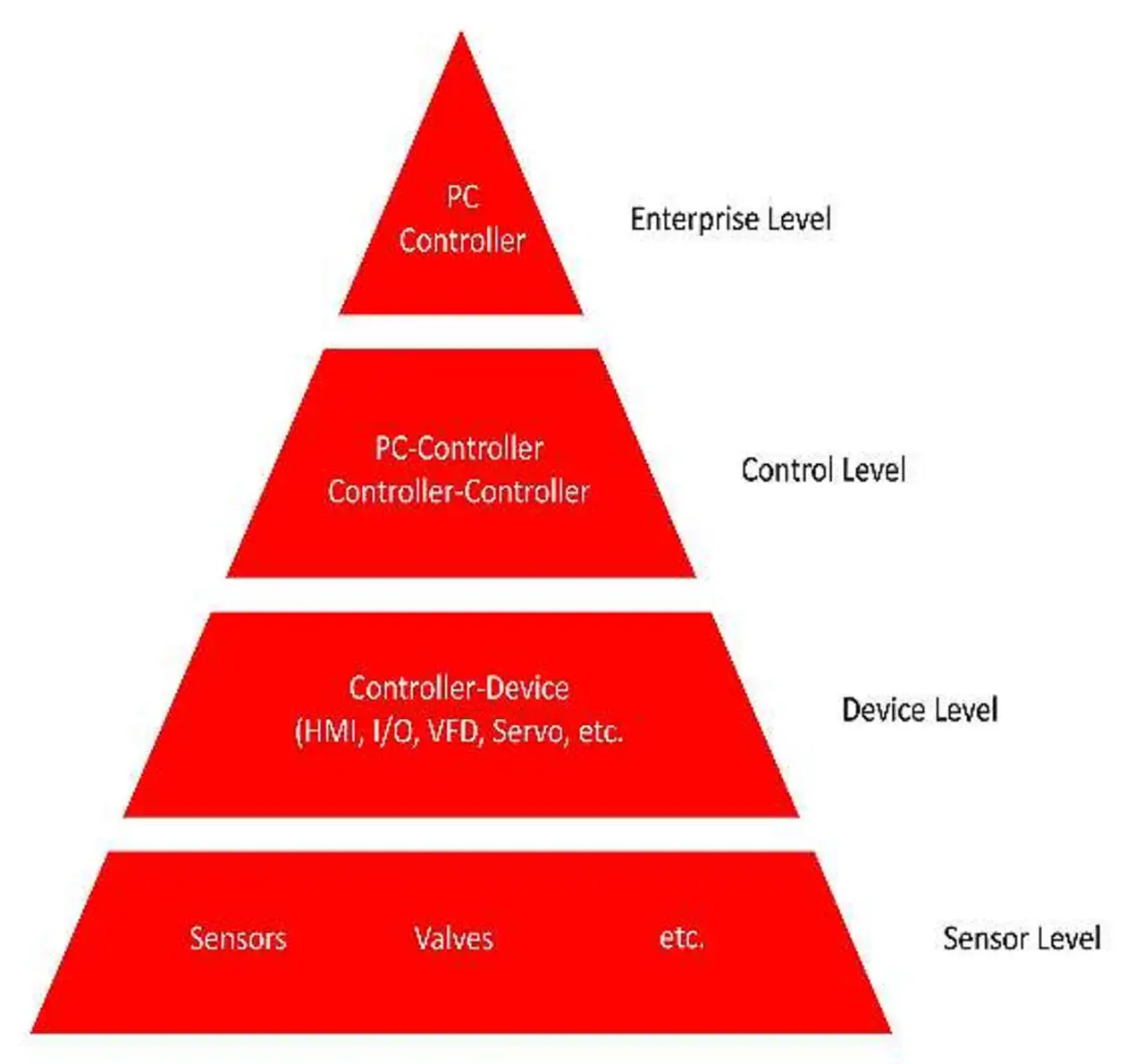 Die unterschiedlichen Ebenen in der industriellen Fertigung lassen sich anhand der Automatisierungspyramide (Bild 1) verdeutlichen.