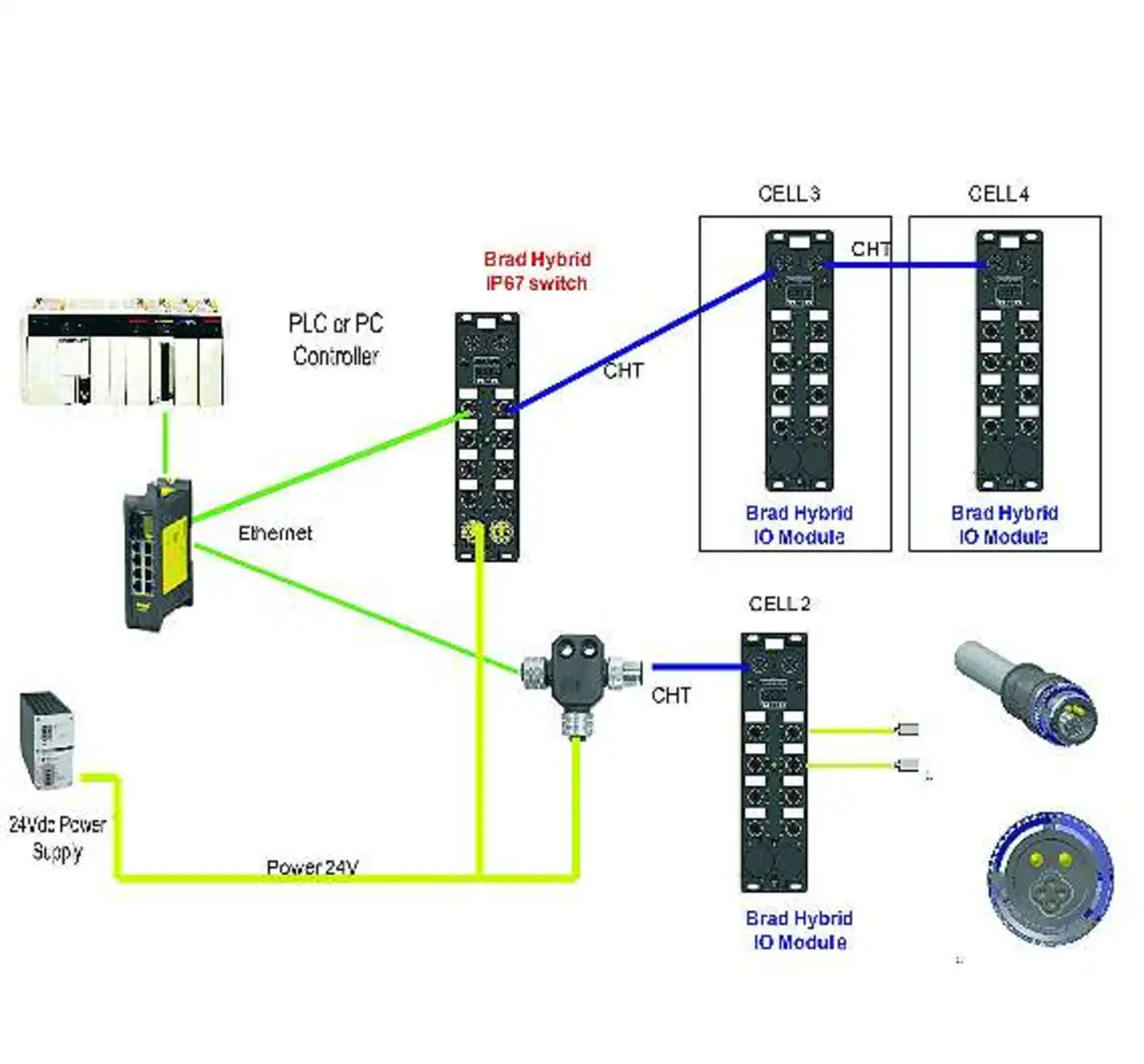Für die einzelnen Ebenen haben sich hierbei verschiedene Techniken der Datenübertragung und -verarbeitung entwickelt, die mit unterschiedlichen Verkabelungs- und Steckverbindersystemen ausgestattet wurden. Neben Festverdrahtung finden für die Signalübertragung die Steckverbindersysteme RJ45 sowie M8 und M12 Anwendung.