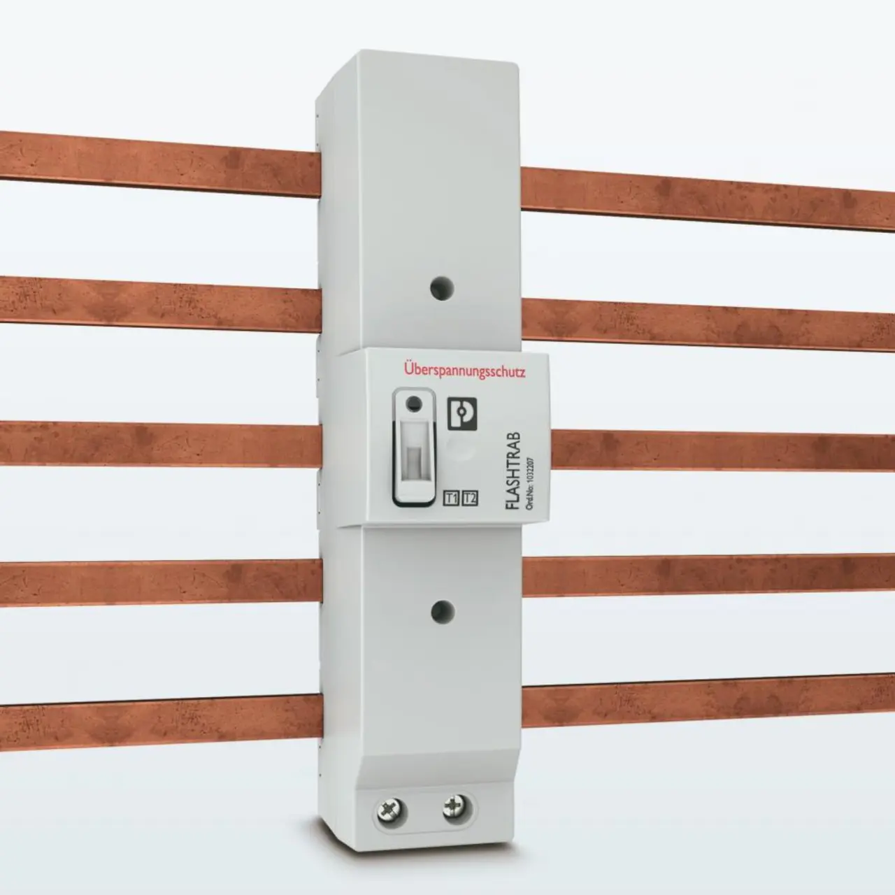 Erster und wichtigster Baustein eines SPD-Systems zum Schutz einer baulichen Anlage mit äußerem Blitzschutzsystem ist ein SPD Typ 1, das am Speisepunkt der Anlage verbaut wird und die gesamte Installation vor den Auswirkungen direkter Blitzeinschläge schützt. Der Einbauort sollte möglichst nah am Gebäudeeintritt der Versorgungsleitungen liegen, um den Eintritt von Blitzströmen in das System zu verhindern und Auswirkungen auf die elektrische Installation zu vermeiden. Diesen Zweck erfüllt die Installation des SPD Typ 1 in einem Aufputzgehäuse unmittelbar nach dem Hausanschlusskasten noch vor dem Zählerschrank.