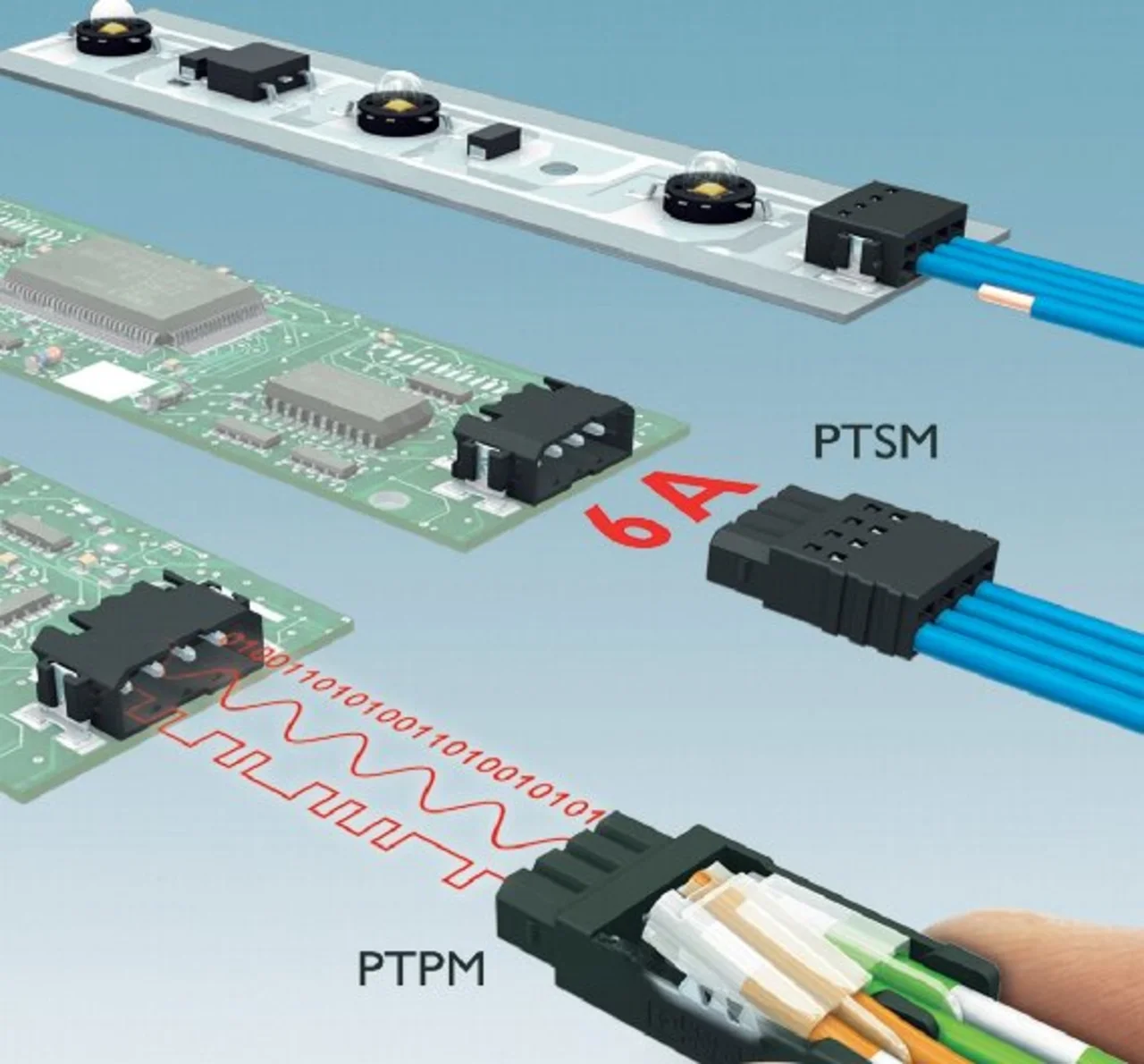 »Neben kompakten Baugrößen werden aber auch schnell zu bedienende Federkraft-Anschlüsse sowie die SMT-Lötfähigkeit der Anschlusstechnik immer wichtiger«, betont Lukas Muth, zuständig für das Produktmarketing Combicon von Phoenix Contact. Für die LED-Beleuchtungstechnik hat das Unternehmen daher seit dem Jahr 2009 eine spezielle Produktfamilie im Bereich der Leiterplattenanschlusstechnik im Produktprogramm: die »PTSM«-Serie. Die Steckverbinder der Baurreihe zeichnen sich laut Phoenix Contact dadurch aus, dass sie sich schnell und einfach handhaben lassen und gleichzeitig eine geringe Baugröße aufweisen. Des Weiteren sind die Produkte für die Verarbeitung im SMT-Prozess ausgelegt.