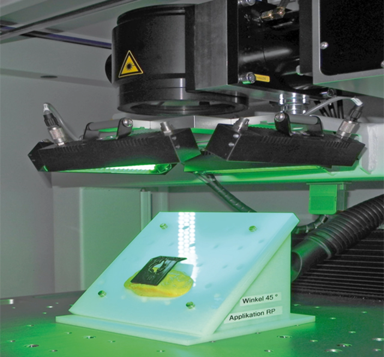 Der »ProtoLaser 3D« benötigt lediglich eine Steckdose und eine Absaugung. Er verfügt über eine höhenverstellbare Arbeitsbühne, um Bauteile unterschiedlicher Abmessungen zu strukturieren (Bild 3). Der Arbeitsbereich umfasst 300 mm x 300 mm x 50 mm, das Scanfeld 100 mm x 100 mm x 25 mm.
