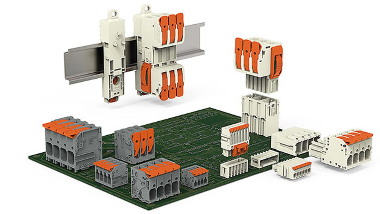 Auf diese abgestimmt sind die aktuellen Leiterplattenklemmen und -steckverbinder mit Hebel von Wago (Bild 1). Das Portfolio umfasst Klemmen für die Nennquerschnitte 1,5 mm², 2,5 mm², 4,0 mm², 6,0 mm² und 16,0 mm² bei Bemessungsdaten bis 1000 V und 76 A. Zentraler Kern ist die Anschlusstechnik mit Push-in namens Cage Clamp. Die Federklemme mit Direktstecktechnik ist bereits seit Jahren beispielsweise in Reihenklemmen, Steckverbindern und Leiterplattenklemmen des Verbindungstechnik-herstellers im Einsatz und ist in Industrie- und Transportanwendungen als sichere und wartungsfreie Verbindungstechnik für alle Leiterarten weit verbreiten.