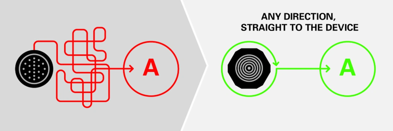 Egal, ob es sich um tragbare medizinischen Geräte etwa zur Patientenüberwachung, industrielle Wearables wie intelligente Arbeitswesten oder tragbare Messgeräte für den Einsatz im Feld handelt: Wenn es darum geht, ein mobiles Gerät anzuschließen, muss dies im wahrsten Sinne des Wortes leicht von der Hand gehen. Steckverbinder mit männlichen Steckern und weiblichen Kupplungen benötigen immer einen präzisen, vordefinierten Steckvorgang. Je kleiner Geräte sind und je häufiger sie verbunden und getrennt werden müssen, desto wichtiger ist das Kriterium der einfachen Steckbarkeit. Aus diesem Grund hat Fischer Connectors in der »Freedom«-Serie einen 360-Grad-Steckmechanismus entwickelt. Die Komponenten enthalten keine Codierung und lassen sich daher blind stecken. Sie verfügen über einen abgedichteten, nicht magnetischen Schnellverriegelungsmechanismus, der mit einem vordefinierten geringen Kraftaufwand funktioniert. Damit ist das Problem der Steckpräzision hinfällig. Die Freedom-Steckverbinder können daher auch an Stellen platziert werden, an denen herkömmliche Verbinder ungeeignet wären.