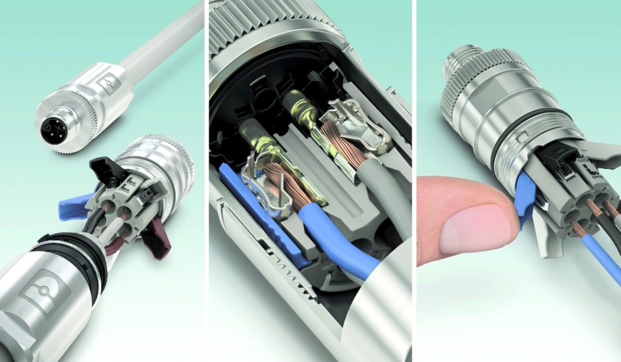 Der M12-Steckverbinder hat sich weltweit als Standard etabliert. In puncto Konfektionierung gibt es aber durchaus Unterschiede. Phoenix Contact setzt zum Beispiel auf den Push-Lock-Anschluss. Dabei handelt es sich um eine Weiterentwicklung der Push-in-Technologie.