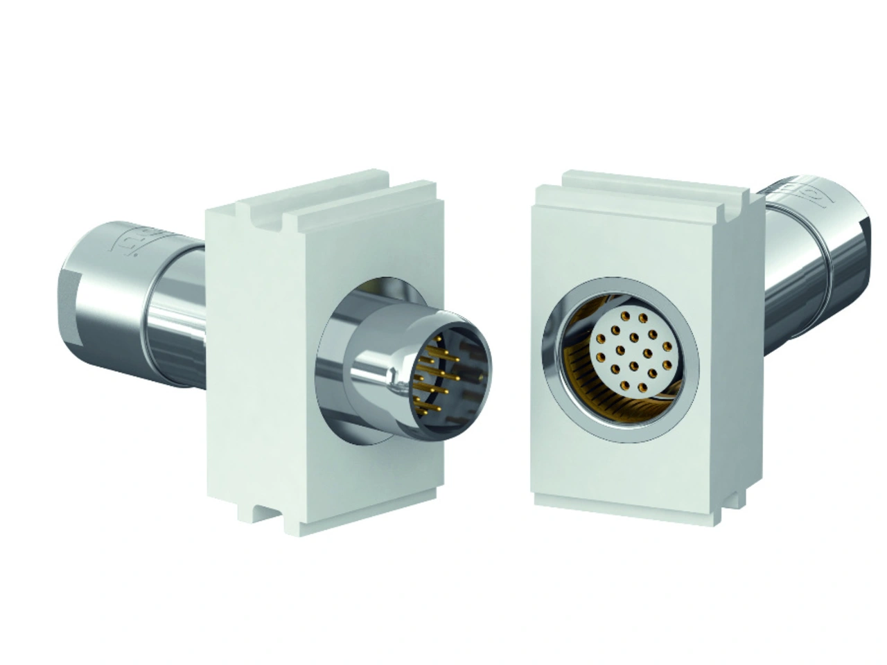 Daneben haben wir unter der Bezeichnung ODU-MAC Medi-Flex eine neue Variante des ODU-MAC mit weißem Kunststoffgehäuse vorgestellt, die sich unter anderem für die störungsfreie Übertragung bei bildgebenden Verfahren in der Medizintechnik eignet. Die Spindelverriegelung, die bei dieser Ausführung standardmäßig dazu gehört, verfügt über eine optische sowie taktile Rückmeldung für ergonomische Handhabung. Zudem haben wir unser ODU-MAC-System um ein Docking-Gehäuse erweitert, das die optimale Zugentlastung der Kabel garantiert.