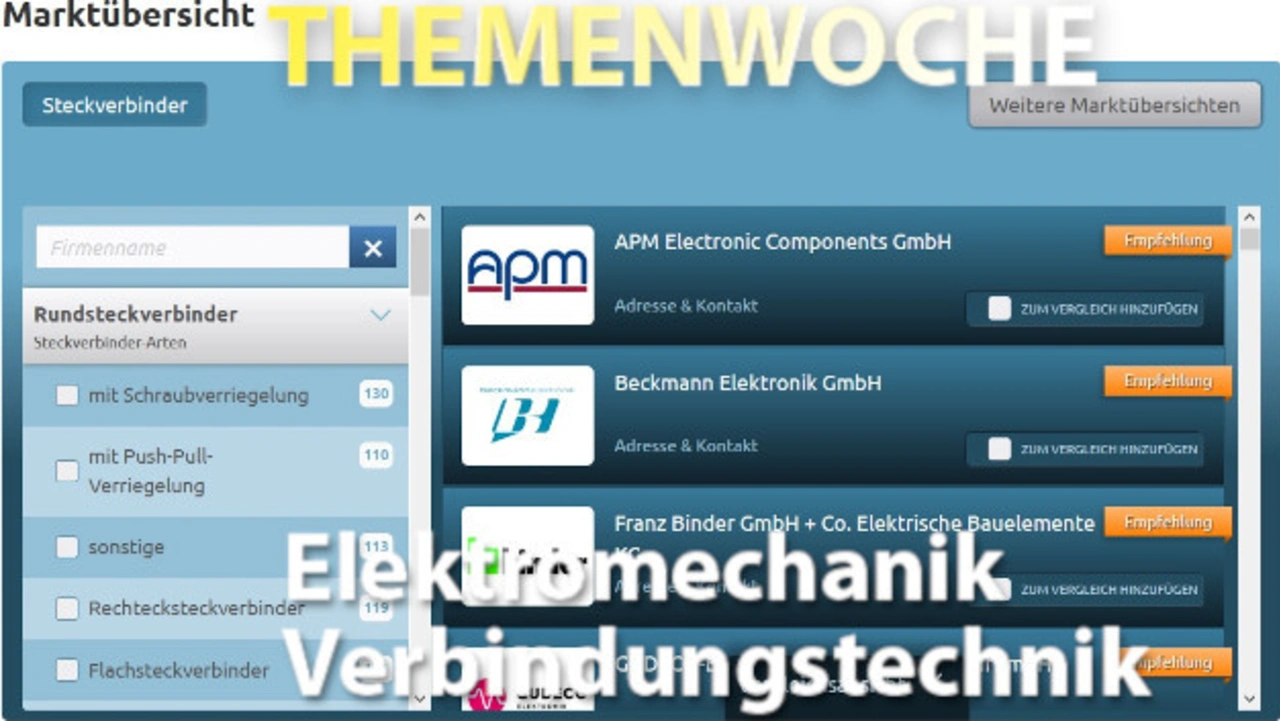 In unserer Online-Themenwoche „Elektromechanik/Verbindungstechnik“ kamen Experten von rund 25 Unternehmen zu Wort – mit Meinungen, in Fachartikeln und in exklusiven Interviews. Hier finden Sie einen Überblick.
