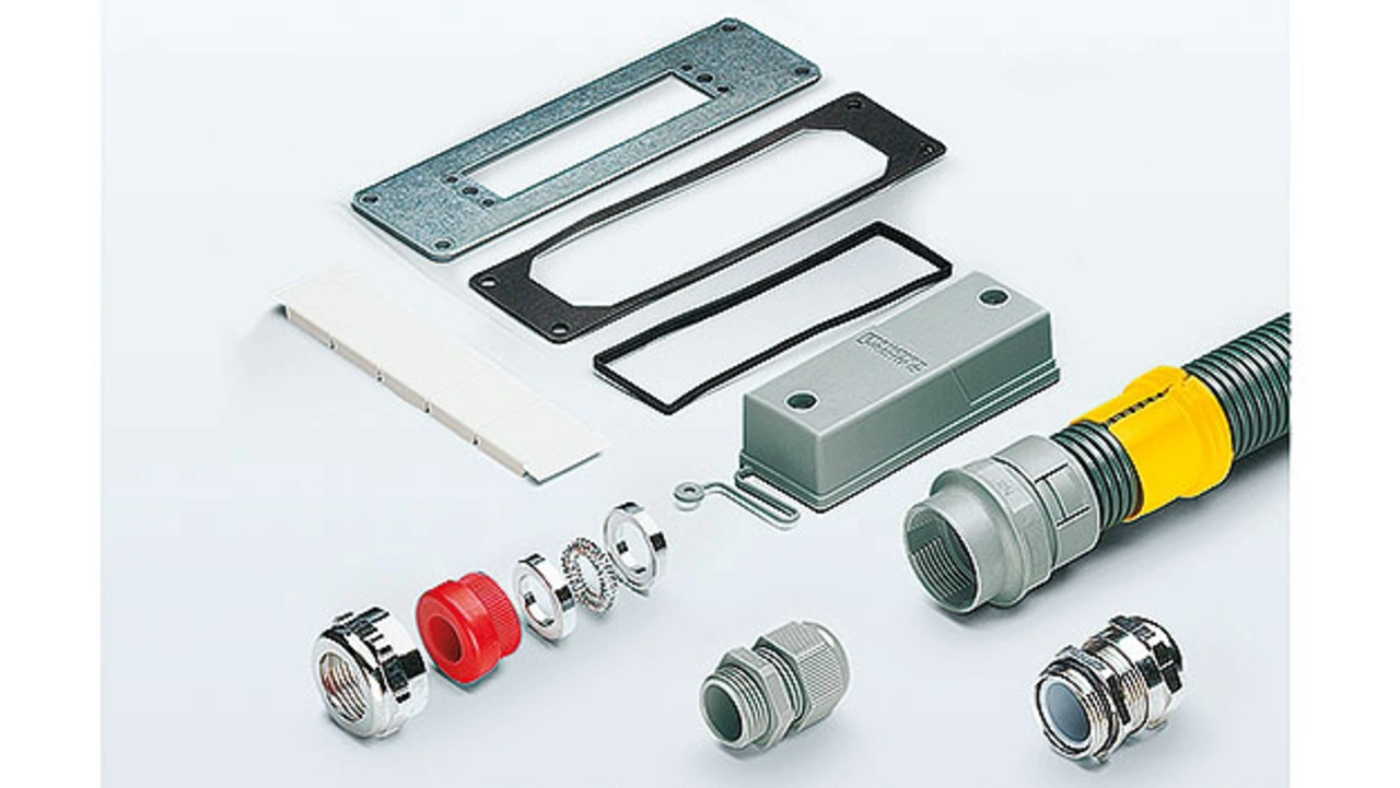 Für Variocon ist ein umfangreiches Zubehörprogramm erhältlich (Bild 2). Bei besonders EMV-kritischen Schnittstellen sorgt ein EMV-Schirmadapter für eine großflächige und niederimpedante Kontaktierung an das Gerätegehäuse. Staubschutzkappen schützen die Stecker und Geräte bis zum Zeitpunkt der Installation. Bei einer hohen Anzahl von Schnittstellen sorgen optionale mechanische Codierungen oder Beschriftungsschilder für Ordnung.