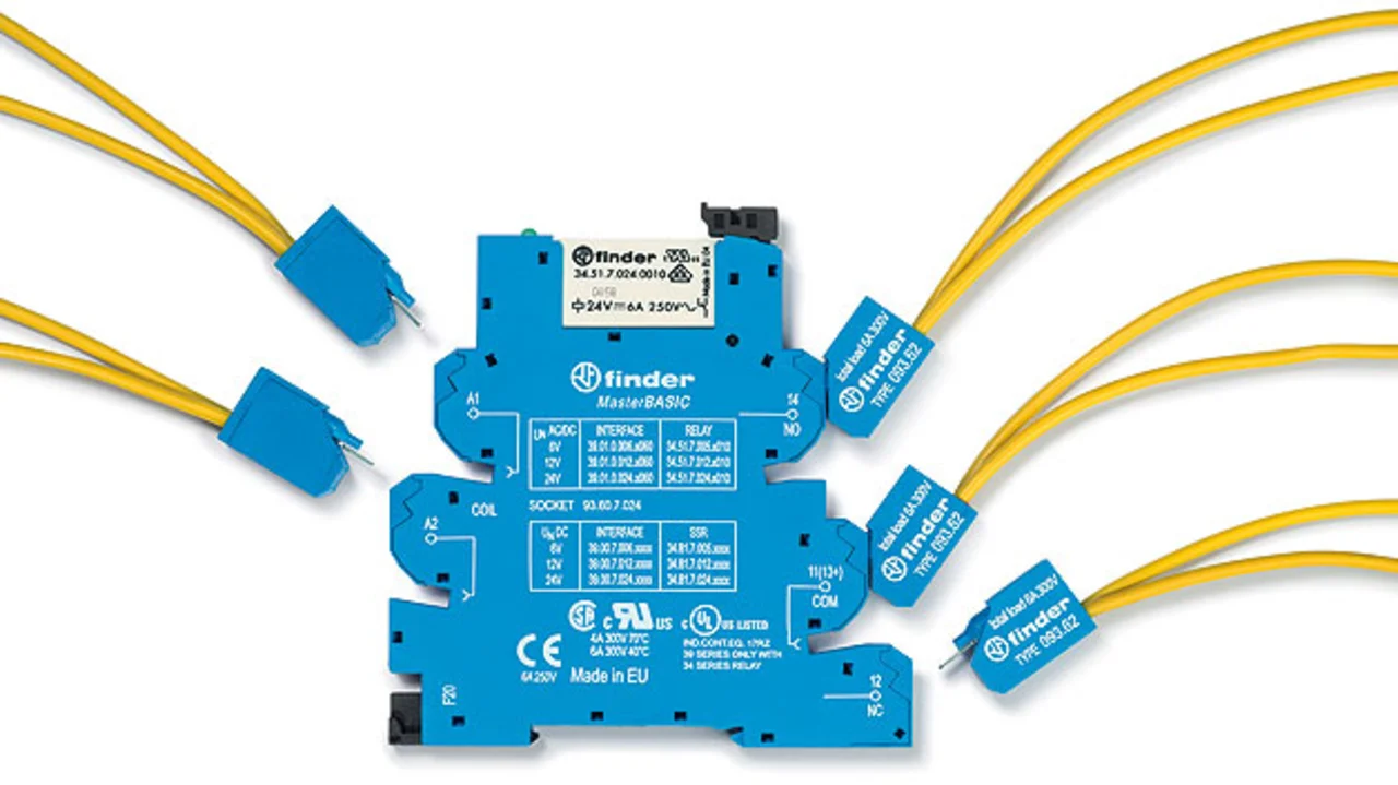 Mit einer Zwei-in-Eins-Klemme erweitert die Binder GmbH die direkten Anschlussmöglichkeiten von Sensoren und Aktoren an die ebenfalls neuen Koppelrelais der Serie 39 (Bild 4) mit Push-in-Klemmen. Die kleinen Doppelklemmen mit steckbaren Push-in-Anschlüssen sind für Anwendungen konzipiert, bei denen eine zweite Leitung einfach und schnell zu verdrahten ist. Die komfortabel einsetzbare Verbindungstechnik fügt sich konstruktiv nahtlos in das Design der 6,2 mm schmalen Koppelrelais ein. Diese bietet der Hersteller in sechs unterschiedlichen Versionen als Koppelrelais im Ein- oder Ausgang der SPS, zum Anschließen von Sensoren und Aktoren, ferner mit zusätzlichem Steckplatz für ein Sicherungsmodul sowie als MasterPlus-Version mit einem Multispannungseingang (24 bis 240 V AC/DC) oder als vollwertiges Zeitrelais mit acht Funktionen an. Mit der 39er-Serie jedenfalls hat das Unternehmen ein Koppelrelais-System entwickelt, das über seine ureigene Funktion, die SPS vor Spannungsspitzen aus dem Umfeld zu schützen, weitere Vorteile mit sich bringt: Weil die drei Leitungen eines Sensors im Eingang zur SPS beziehungsweise die Leitungen eines ausgangsseitigen Aktors direkt am jeweiligen Koppelrelais anschließbar sind, können zusätzliche Reihenklemmen wegfallen. Kammbrücken in unterschiedlichen Farben reduzieren den Verdrahtungsaufwand noch zusätzlich.
