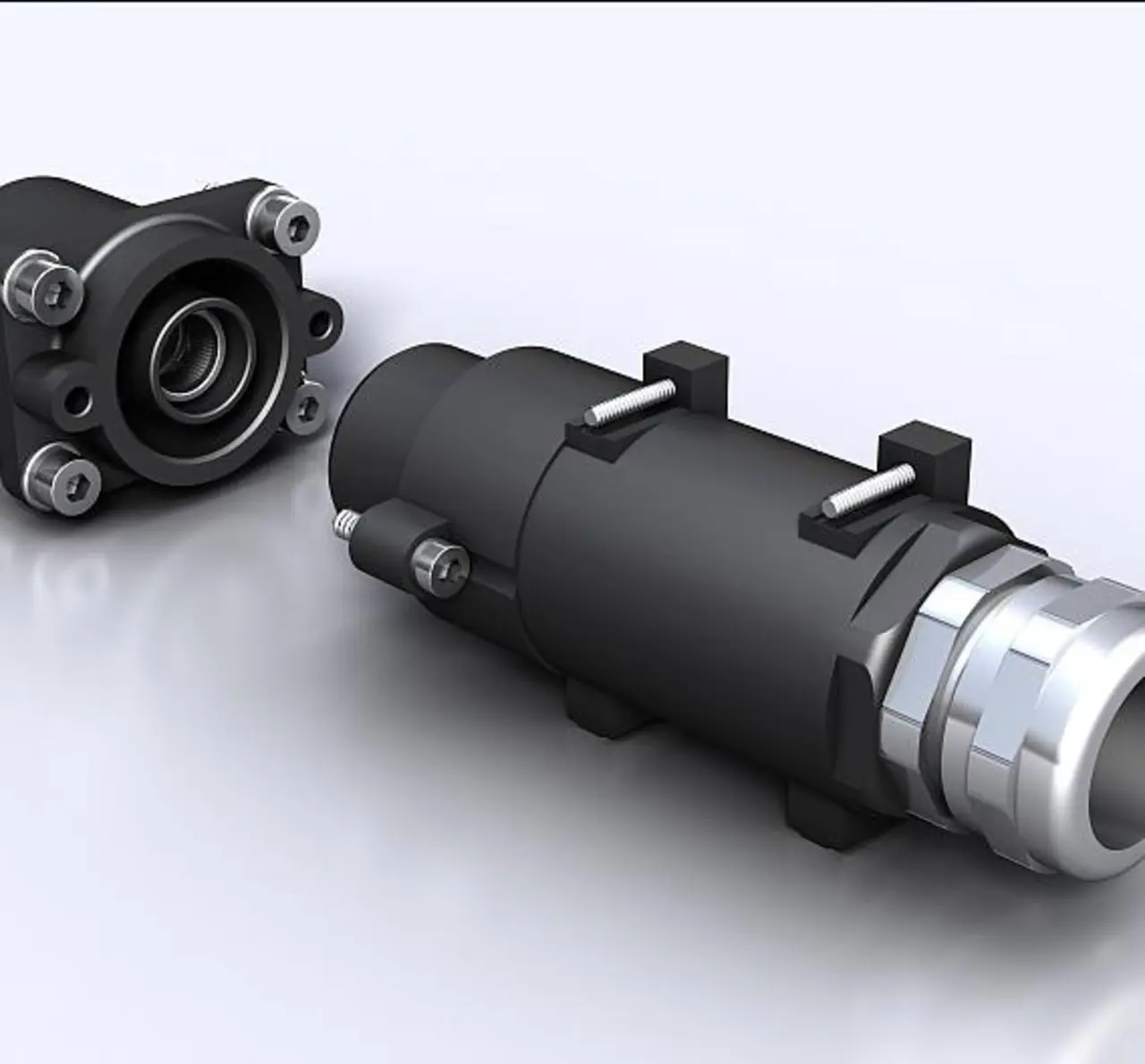 Der zulässige Temperaturbereich reicht von -50 bis +120 °C. Das einpolige Steckverbinderkonzept ist mit 60 x 80 x 140 mm sehr kompakt ausgeführt. Es besteht aus einem Aluminiumdruckgussgehäuse, Crimpkontakt, Isolierhülse, Abstandshalter, Druckschraube, interne Schirmanbindung und einer M 40-Kabelverschraubung.