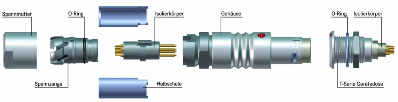 Yamaichi Electronics hat die Dichtung zum Kabel auf eine einzige, abdichtende Spannzange reduziert – marktübliche Steckverbinder enthalten bis zu drei Teile. Dadurch lässt sich der wasserdichte Steckverbinder deutlich robuster, schneller und risikoärmer montieren, weil Anwender bei der T-Serie nur ein Teil aufbauen müssen. Gleichzeitig reduziert das Prinzip das Risiko von Dichtungsbeschädigungen.